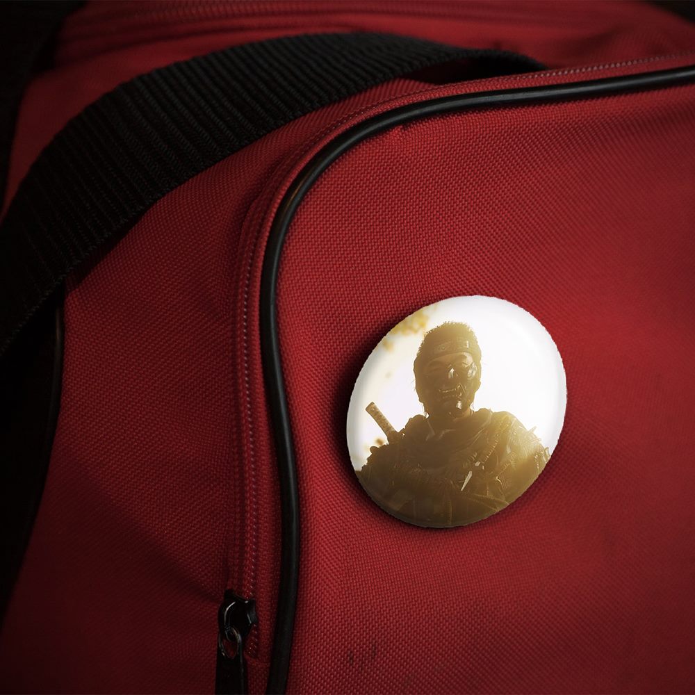 پیکسل 44 میلی متری جین(گوست) گوست آف سوشیماخندالو با روکش سلفون حرارتی مات مخملی ضدخش و قطعه پشتی رنگی تولید شده است. قطعات پلاستیکی پشت پیکسل با سوزن یک تکه ثابت و بدون لغزش و جا به جایی، ایستایی بسیار بهتری نسبت به پشتی فلزی پیکسل دارند که این مهم در تولید این محصول نیز رعایت شده است.