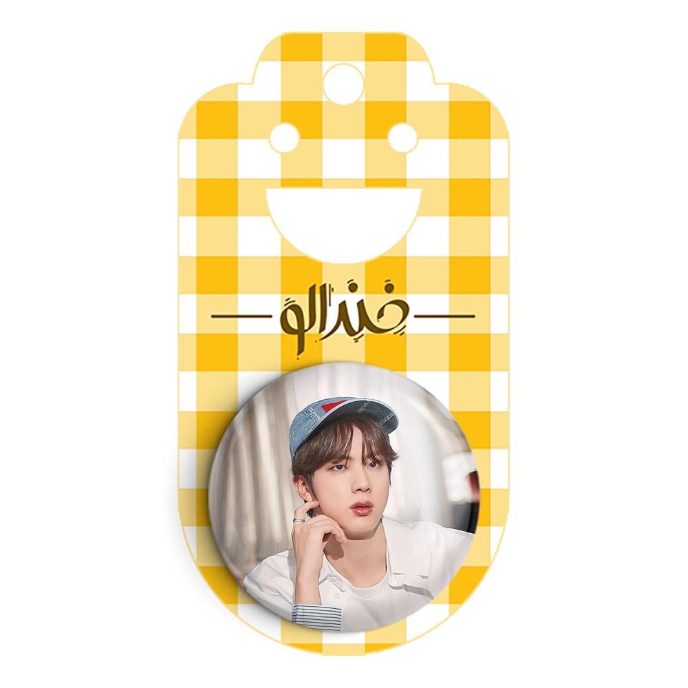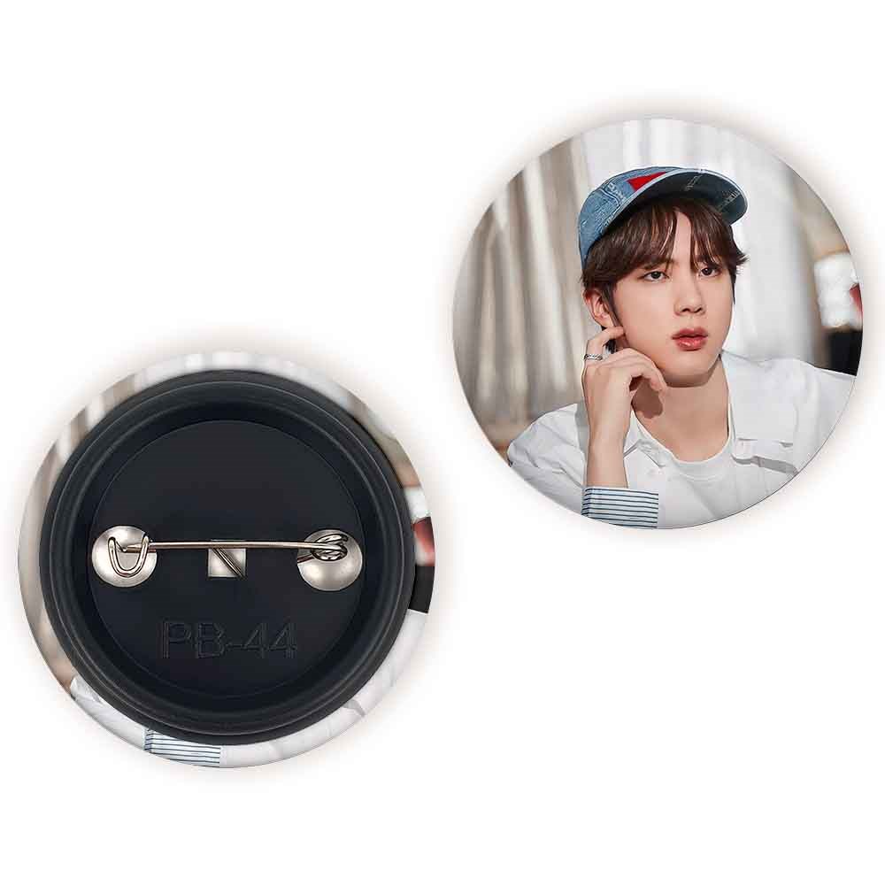پیکسل 44 میلی متری جین Jin گروه بی تی اس BTS خندالو با روکش سلفون حرارتی مات مخملی ضدخش و قطعه پشتی رنگی تولید شده است.پلاستیکی پشت پیکسل با سوزن یک تکه ثابت و بدون لغزش و جا به جایی، ایستایی بسیار بهتری نسبت به پشتی فلزی پیکسل دارند که این مهم در تولید این محصول نیز رعایت شده است.