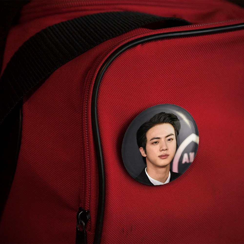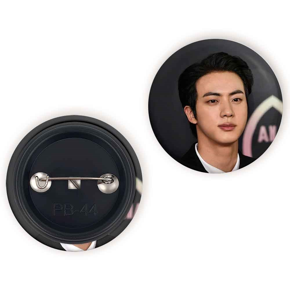 پیکسل 44 میلی متری جین Jin گروه بی تی اس BTS خندالو با روکش سلفون حرارتی مات مخملی ضدخش و قطعه پشتی رنگی تولید شده است.پلاستیکی پشت پیکسل با سوزن یک تکه ثابت و بدون لغزش و جا به جایی، ایستایی بسیار بهتری نسبت به پشتی فلزی پیکسل دارند که این مهم در تولید این محصول نیز رعایت شده است.