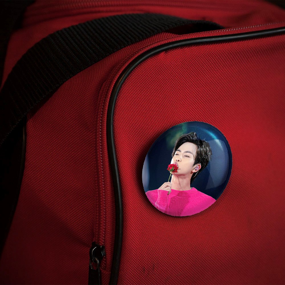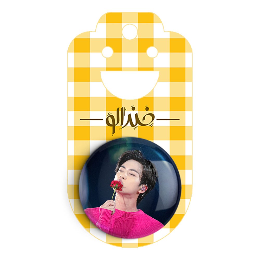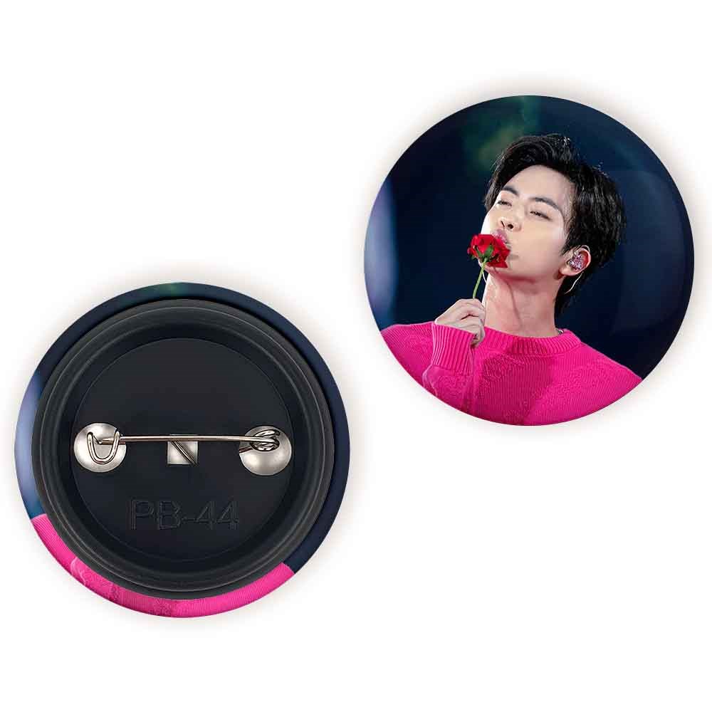 پیکسل 44 میلی متری جین Jin گروه بی تی اس BTS خندالو با روکش سلفون حرارتی مات مخملی ضدخش و قطعه پشتی رنگی تولید شده است.پلاستیکی پشت پیکسل با سوزن یک تکه ثابت و بدون لغزش و جا به جایی، ایستایی بسیار بهتری نسبت به پشتی فلزی پیکسل دارند که این مهم در تولید این محصول نیز رعایت شده است.
