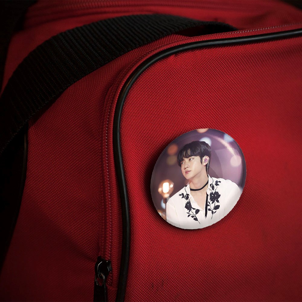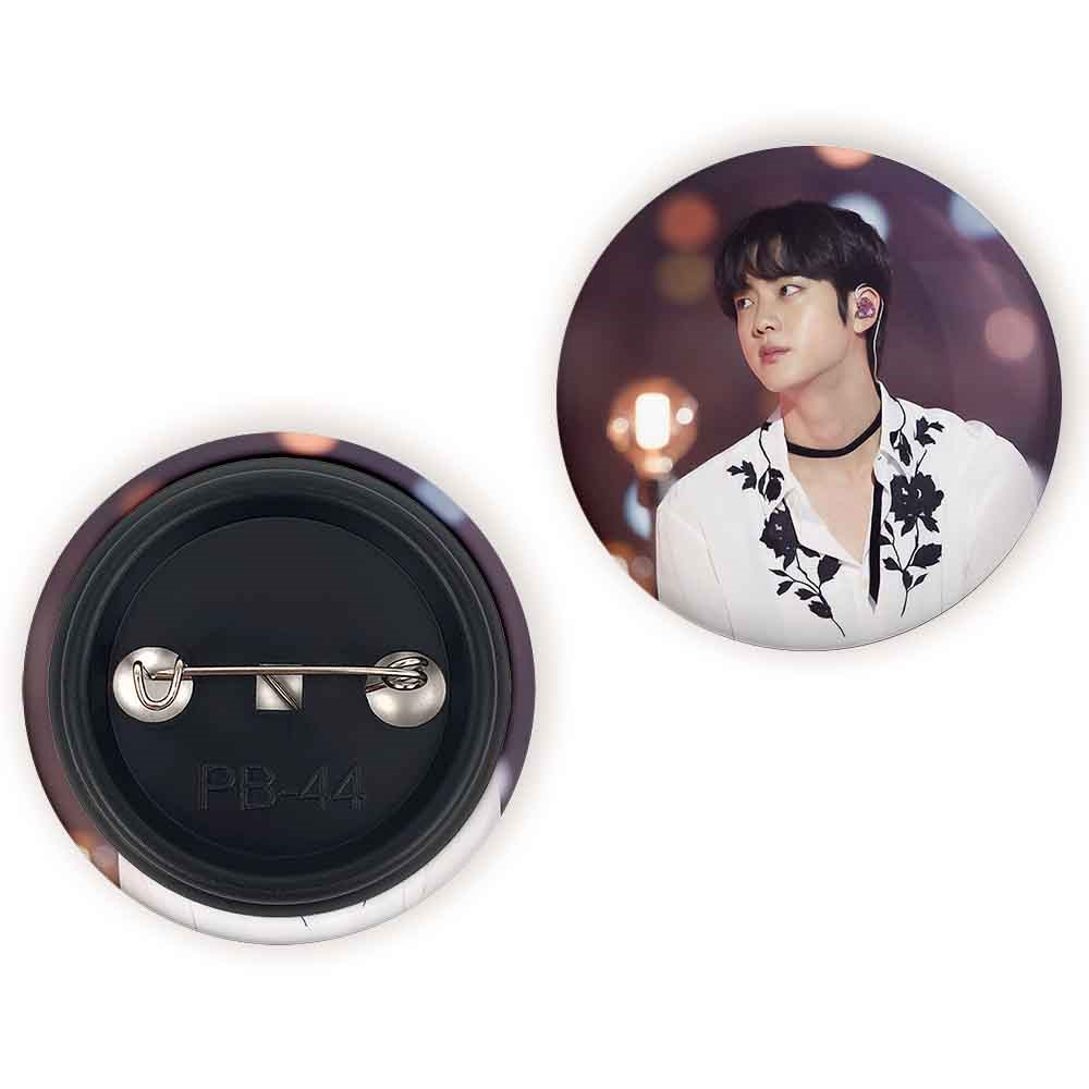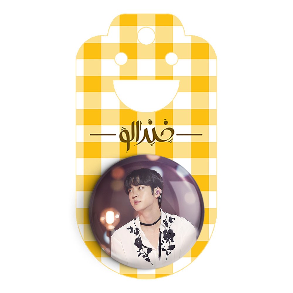پیکسل 44 میلی متری جین Jin گروه بی تی اس BTS خندالو با روکش سلفون حرارتی مات مخملی ضدخش و قطعه پشتی رنگی تولید شده است.پلاستیکی پشت پیکسل با سوزن یک تکه ثابت و بدون لغزش و جا به جایی، ایستایی بسیار بهتری نسبت به پشتی فلزی پیکسل دارند که این مهم در تولید این محصول نیز رعایت شده است.