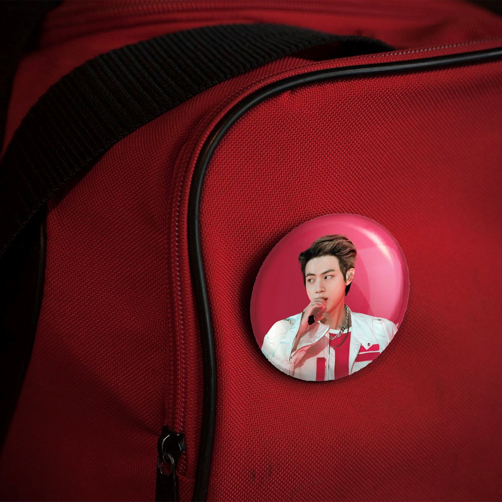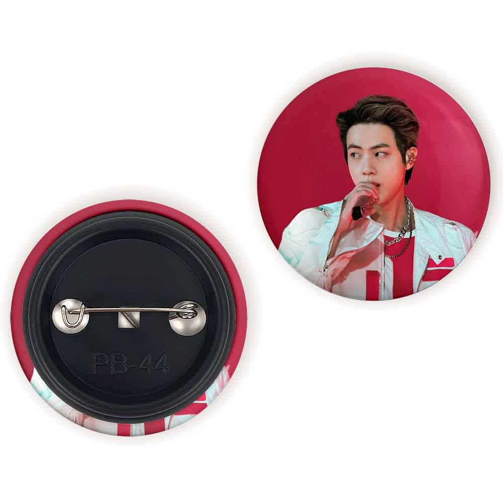 پیکسل 44 میلی متری جین Jin گروه بی تی اس BTS خندالو با روکش سلفون حرارتی مات مخملی ضدخش و قطعه پشتی رنگی تولید شده است.پلاستیکی پشت پیکسل با سوزن یک تکه ثابت و بدون لغزش و جا به جایی، ایستایی بسیار بهتری نسبت به پشتی فلزی پیکسل دارند که این مهم در تولید این محصول نیز رعایت شده است.