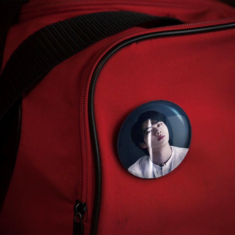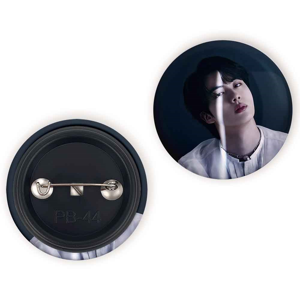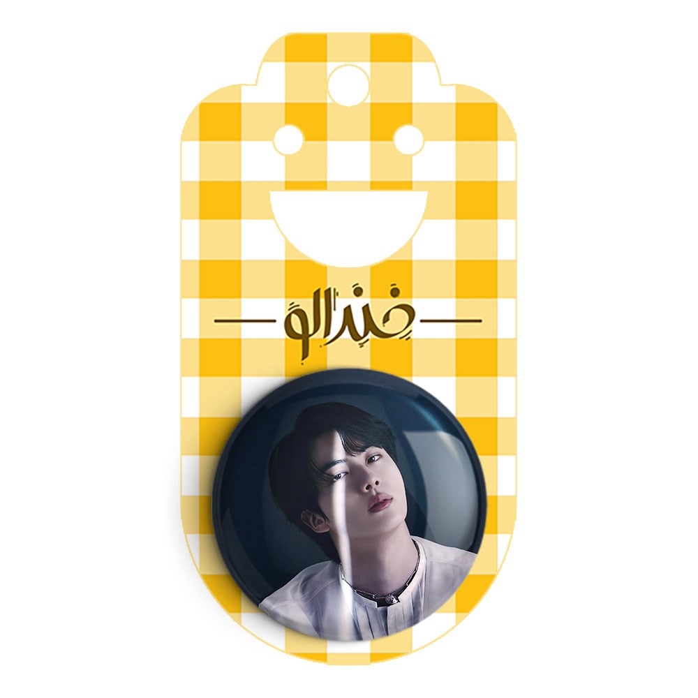 پیکسل 44 میلی متری جین Jin گروه بی تی اس BTS خندالو با روکش سلفون حرارتی مات مخملی ضدخش و قطعه پشتی رنگی تولید شده است.پلاستیکی پشت پیکسل با سوزن یک تکه ثابت و بدون لغزش و جا به جایی، ایستایی بسیار بهتری نسبت به پشتی فلزی پیکسل دارند که این مهم در تولید این محصول نیز رعایت شده است.