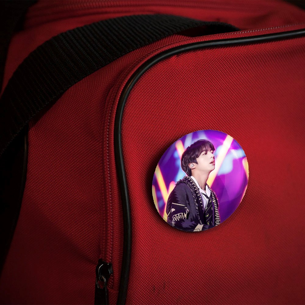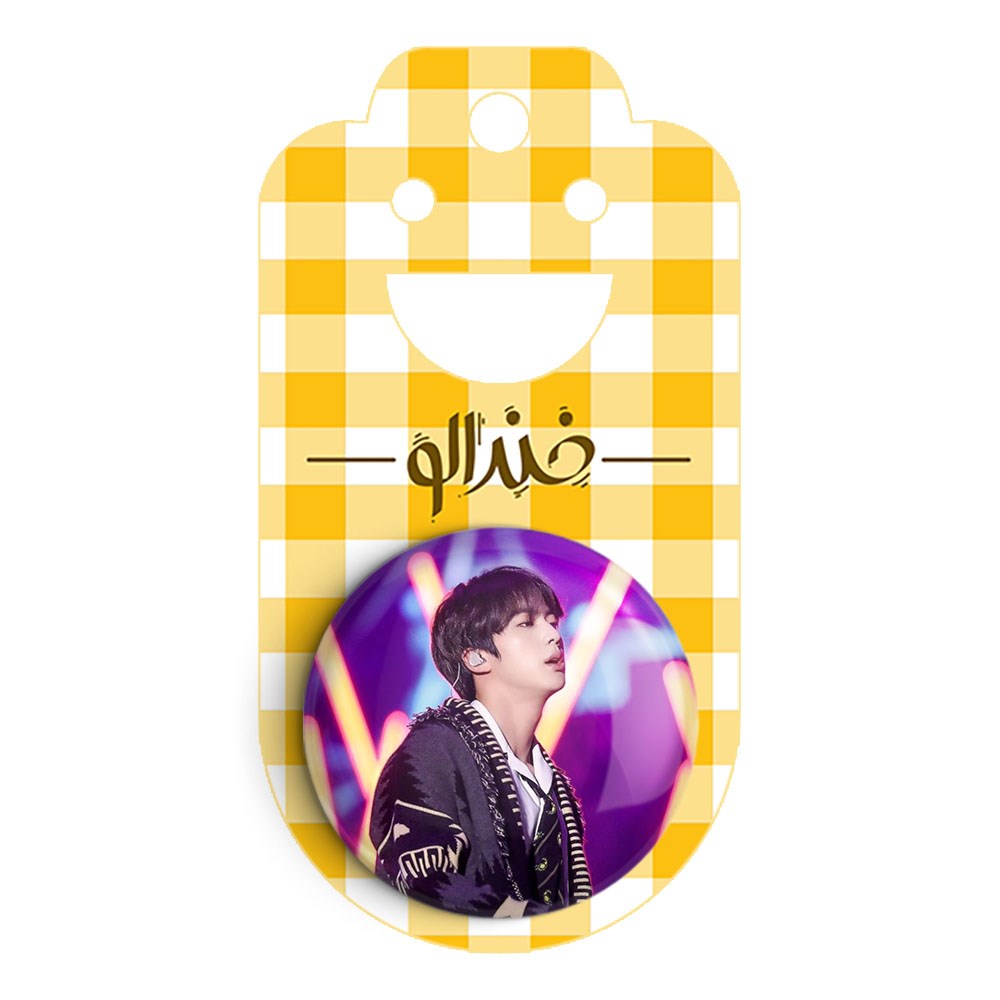 پیکسل 44 میلی متری جین Jin گروه بی تی اس BTS خندالو با روکش سلفون حرارتی مات مخملی ضدخش و قطعه پشتی رنگی تولید شده است.پلاستیکی پشت پیکسل با سوزن یک تکه ثابت و بدون لغزش و جا به جایی، ایستایی بسیار بهتری نسبت به پشتی فلزی پیکسل دارند که این مهم در تولید این محصول نیز رعایت شده است.