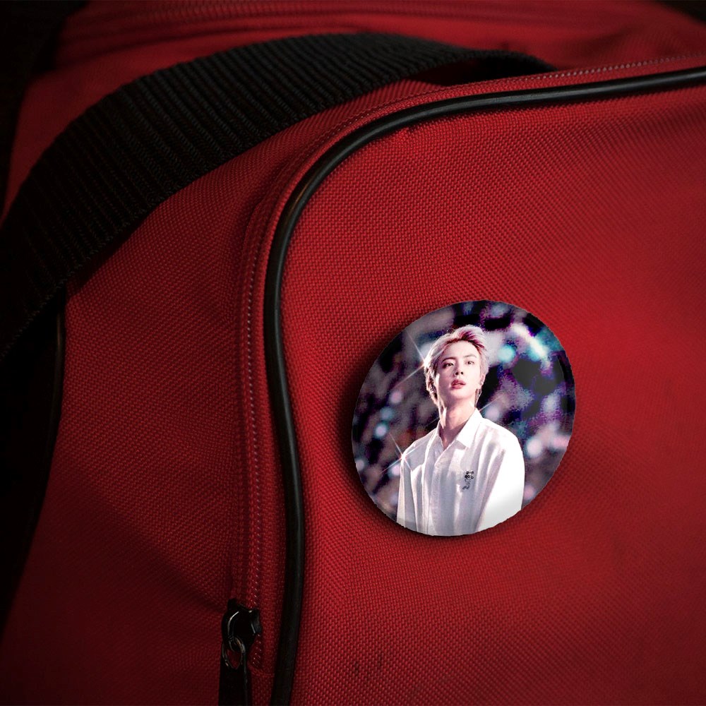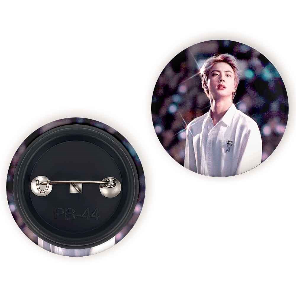 پیکسل 44 میلی متری جین Jin گروه بی تی اس BTS خندالو با روکش سلفون حرارتی مات مخملی ضدخش و قطعه پشتی رنگی تولید شده است.پلاستیکی پشت پیکسل با سوزن یک تکه ثابت و بدون لغزش و جا به جایی، ایستایی بسیار بهتری نسبت به پشتی فلزی پیکسل دارند که این مهم در تولید این محصول نیز رعایت شده است.