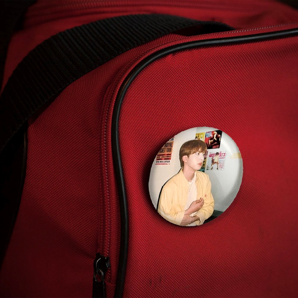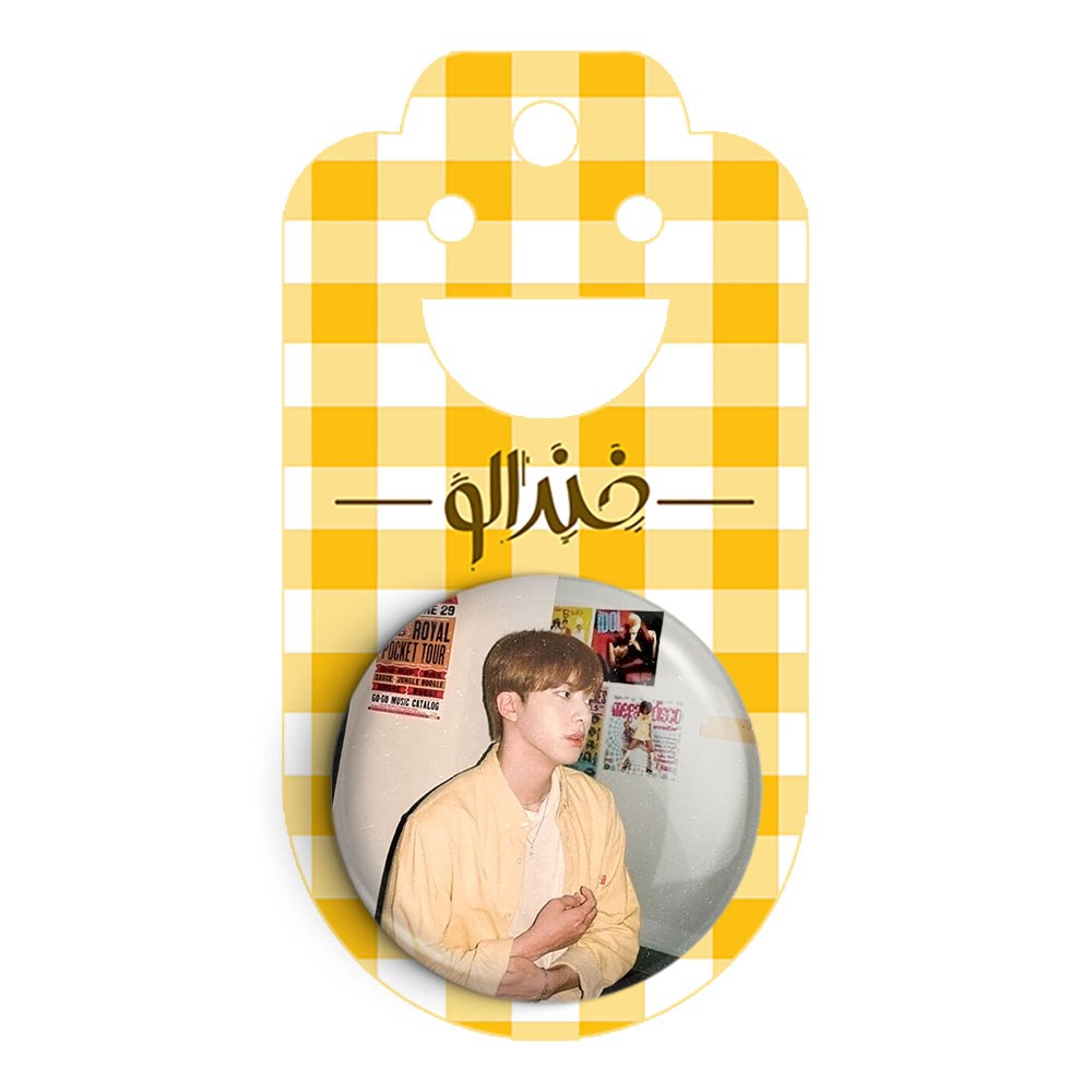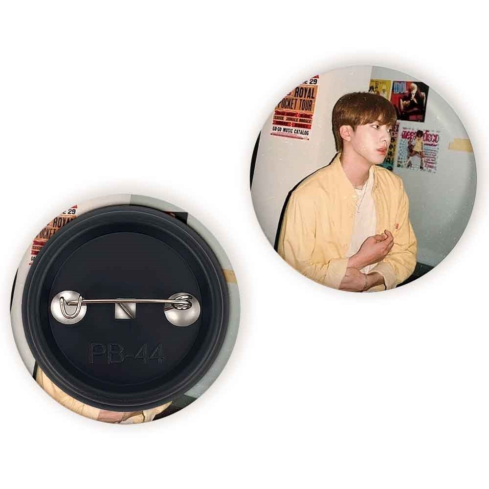 پیکسل 44 میلی متری جین Jin گروه بی تی اس BTS خندالو با روکش سلفون حرارتی مات مخملی ضدخش و قطعه پشتی رنگی تولید شده است.پلاستیکی پشت پیکسل با سوزن یک تکه ثابت و بدون لغزش و جا به جایی، ایستایی بسیار بهتری نسبت به پشتی فلزی پیکسل دارند که این مهم در تولید این محصول نیز رعایت شده است.