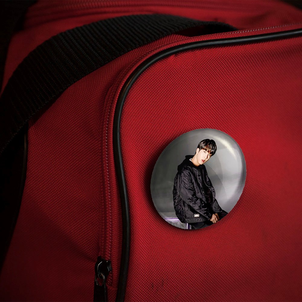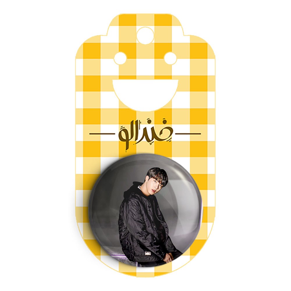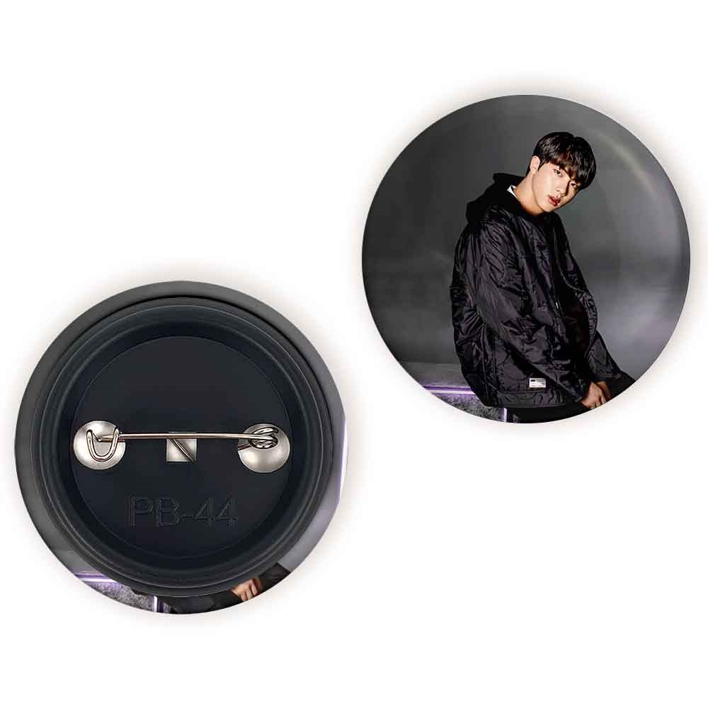 پیکسل 44 میلی متری جین Jin گروه بی تی اس BTS خندالو با روکش سلفون حرارتی مات مخملی ضدخش و قطعه پشتی رنگی تولید شده است.پلاستیکی پشت پیکسل با سوزن یک تکه ثابت و بدون لغزش و جا به جایی، ایستایی بسیار بهتری نسبت به پشتی فلزی پیکسل دارند که این مهم در تولید این محصول نیز رعایت شده است.