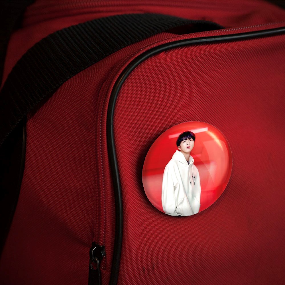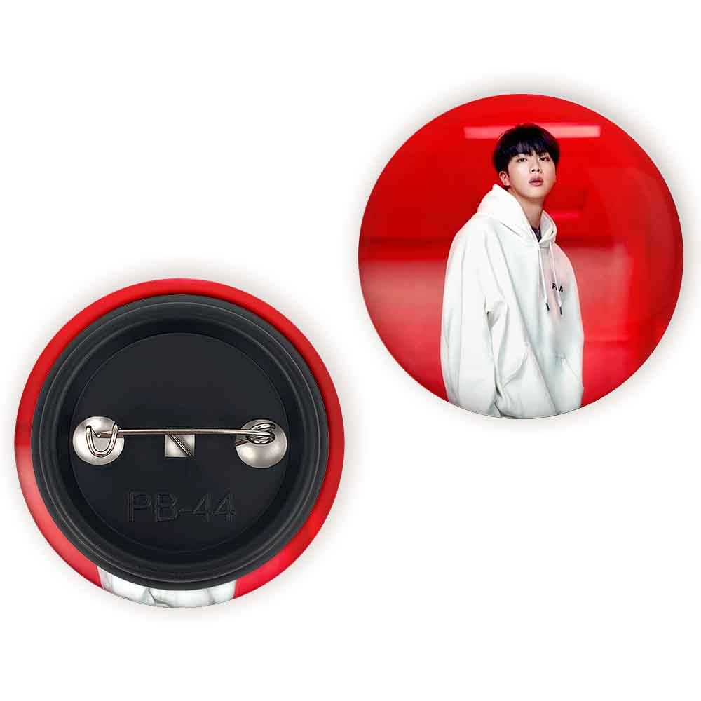 پیکسل 44 میلی متری جین Jin گروه بی تی اس BTS خندالو با روکش سلفون حرارتی مات مخملی ضدخش و قطعه پشتی رنگی تولید شده است.پلاستیکی پشت پیکسل با سوزن یک تکه ثابت و بدون لغزش و جا به جایی، ایستایی بسیار بهتری نسبت به پشتی فلزی پیکسل دارند که این مهم در تولید این محصول نیز رعایت شده است.