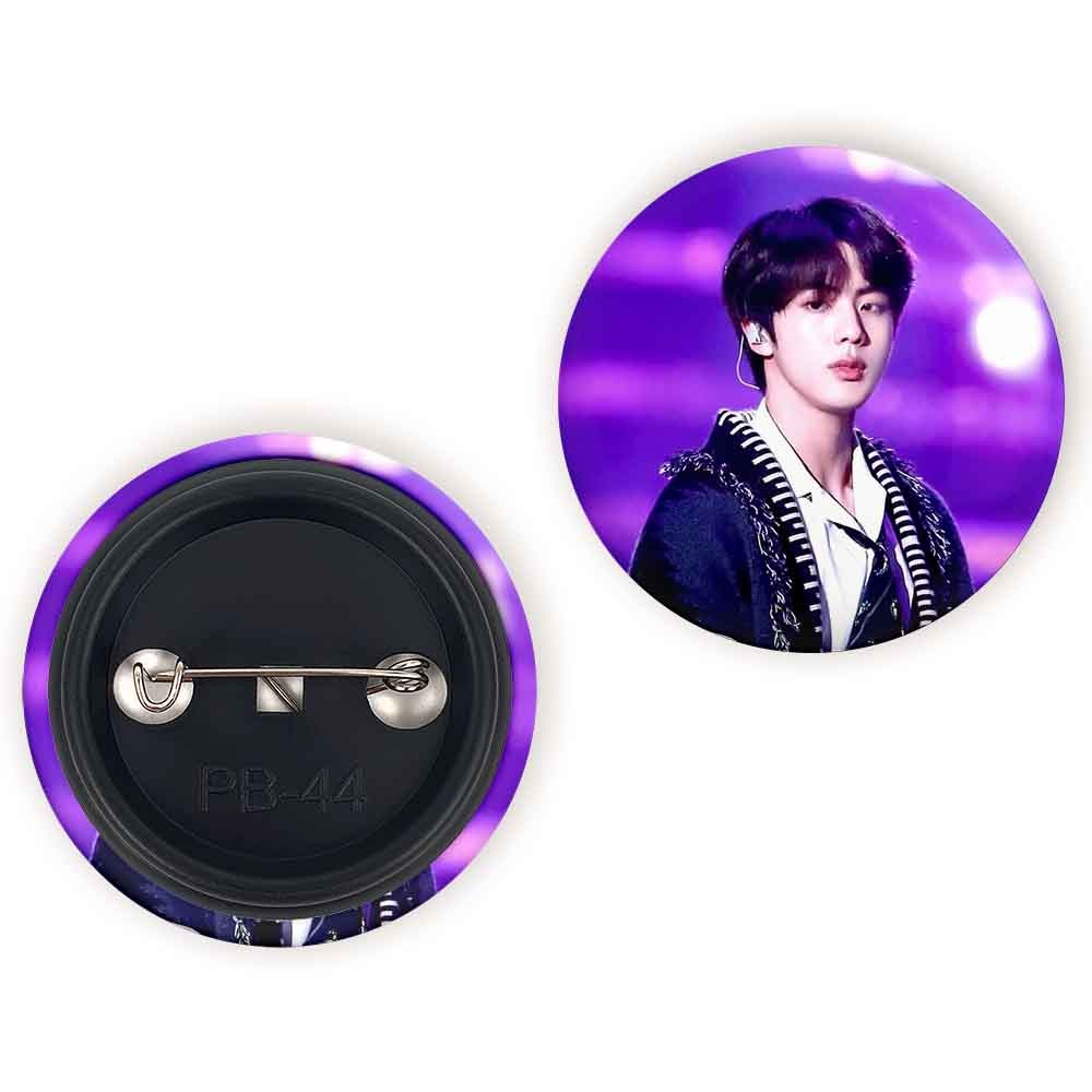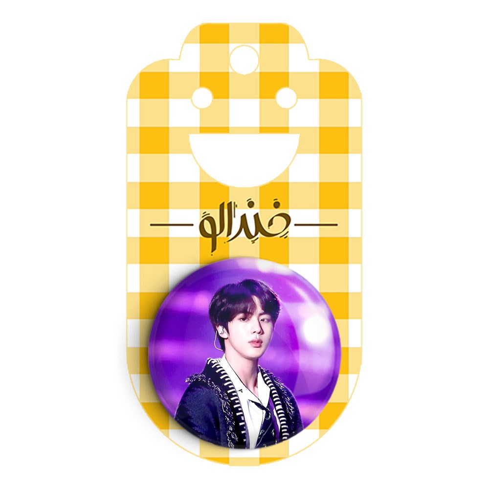 پیکسل 44 میلی متری جین Jin گروه بی تی اس BTS خندالو با روکش سلفون حرارتی مات مخملی ضدخش و قطعه پشتی رنگی تولید شده است.پلاستیکی پشت پیکسل با سوزن یک تکه ثابت و بدون لغزش و جا به جایی، ایستایی بسیار بهتری نسبت به پشتی فلزی پیکسل دارند که این مهم در تولید این محصول نیز رعایت شده است.
