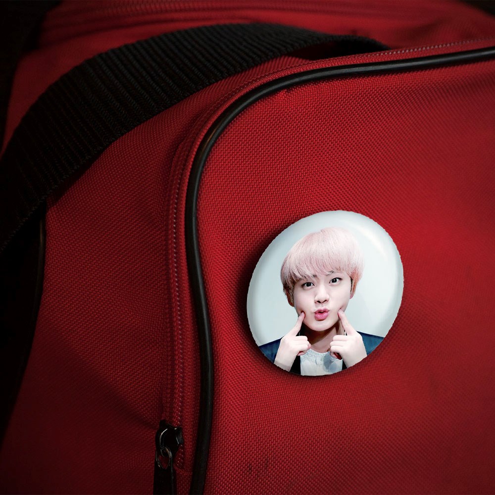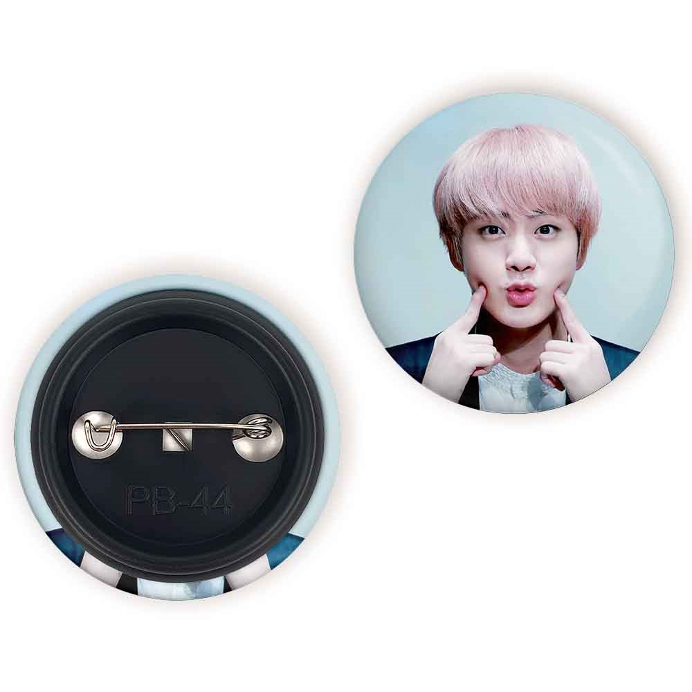 پیکسل 44 میلی متری جین Jin گروه بی تی اس BTS خندالو با روکش سلفون حرارتی مات مخملی ضدخش و قطعه پشتی رنگی تولید شده است.پلاستیکی پشت پیکسل با سوزن یک تکه ثابت و بدون لغزش و جا به جایی، ایستایی بسیار بهتری نسبت به پشتی فلزی پیکسل دارند که این مهم در تولید این محصول نیز رعایت شده است.
