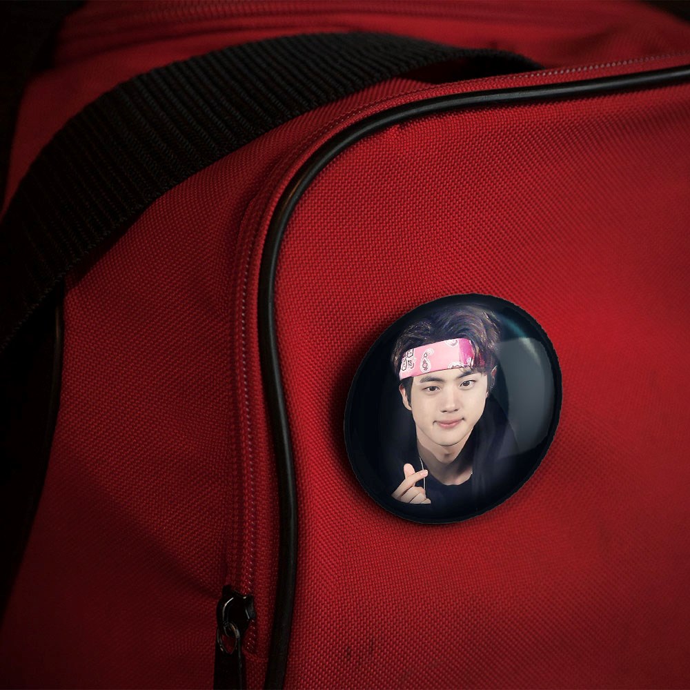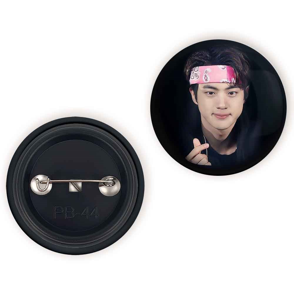 پیکسل 44 میلی متری جین Jin گروه بی تی اس BTS خندالو با روکش سلفون حرارتی مات مخملی ضدخش و قطعه پشتی رنگی تولید شده است.پلاستیکی پشت پیکسل با سوزن یک تکه ثابت و بدون لغزش و جا به جایی، ایستایی بسیار بهتری نسبت به پشتی فلزی پیکسل دارند که این مهم در تولید این محصول نیز رعایت شده است.