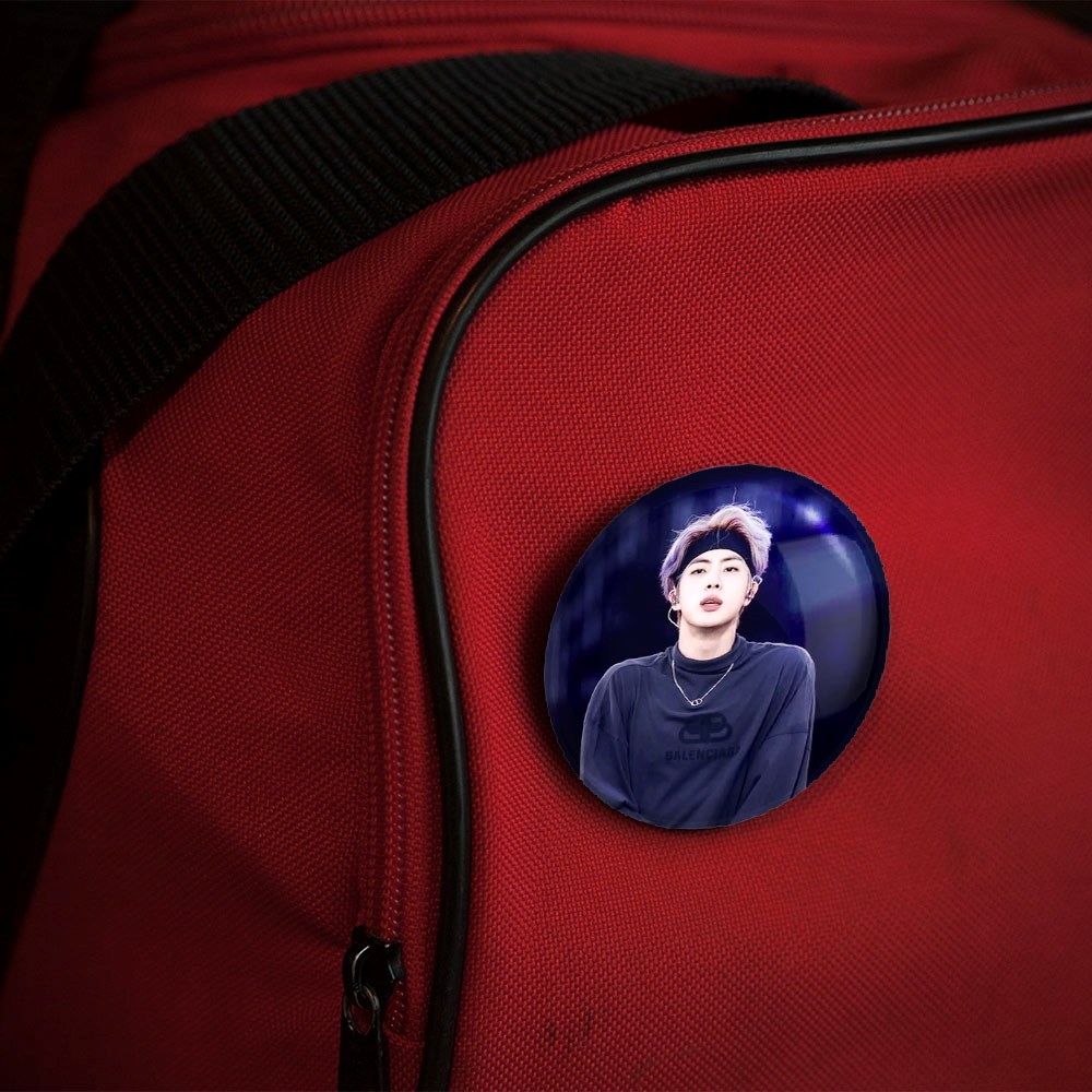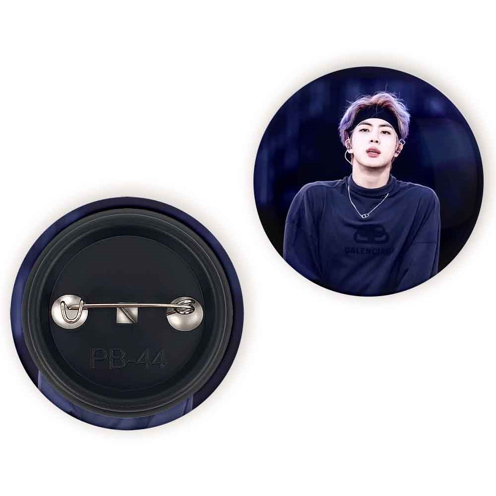 پیکسل 44 میلی متری جین Jin گروه بی تی اس BTS خندالو با روکش سلفون حرارتی مات مخملی ضدخش و قطعه پشتی رنگی تولید شده است.پلاستیکی پشت پیکسل با سوزن یک تکه ثابت و بدون لغزش و جا به جایی، ایستایی بسیار بهتری نسبت به پشتی فلزی پیکسل دارند که این مهم در تولید این محصول نیز رعایت شده است.
