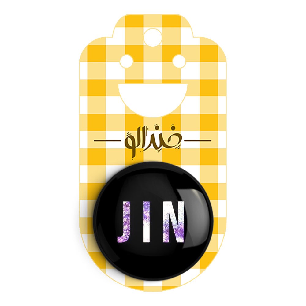 پیکسل 44 میلی متری جین Jin گروه بی تی اس BTS خندالو با روکش سلفون حرارتی مات مخملی ضدخش و قطعه پشتی رنگی تولید شده است.پلاستیکی پشت پیکسل با سوزن یک تکه ثابت و بدون لغزش و جا به جایی، ایستایی بسیار بهتری نسبت به پشتی فلزی پیکسل دارند که این مهم در تولید این محصول نیز رعایت شده است.