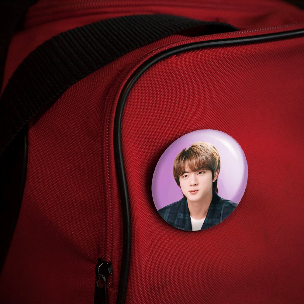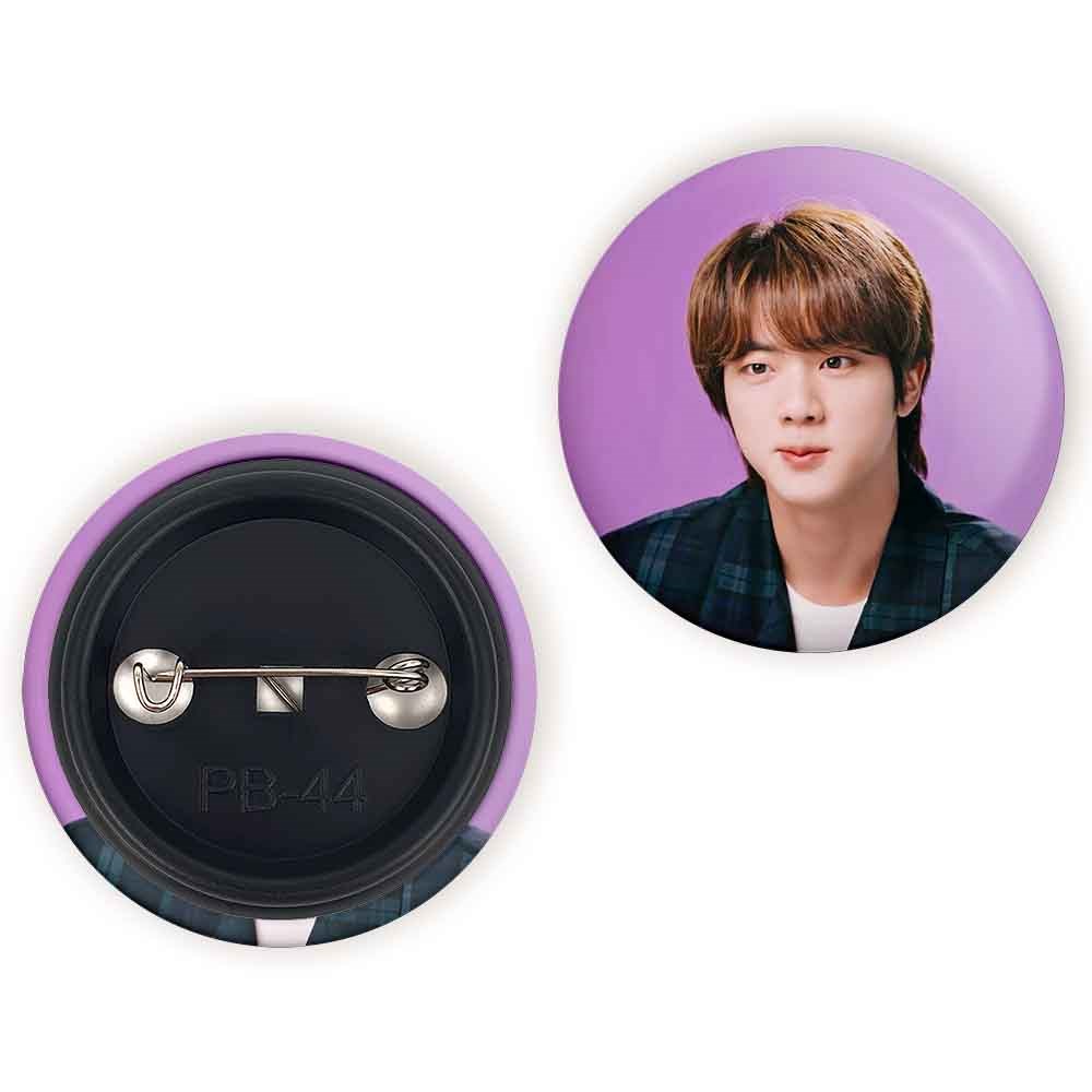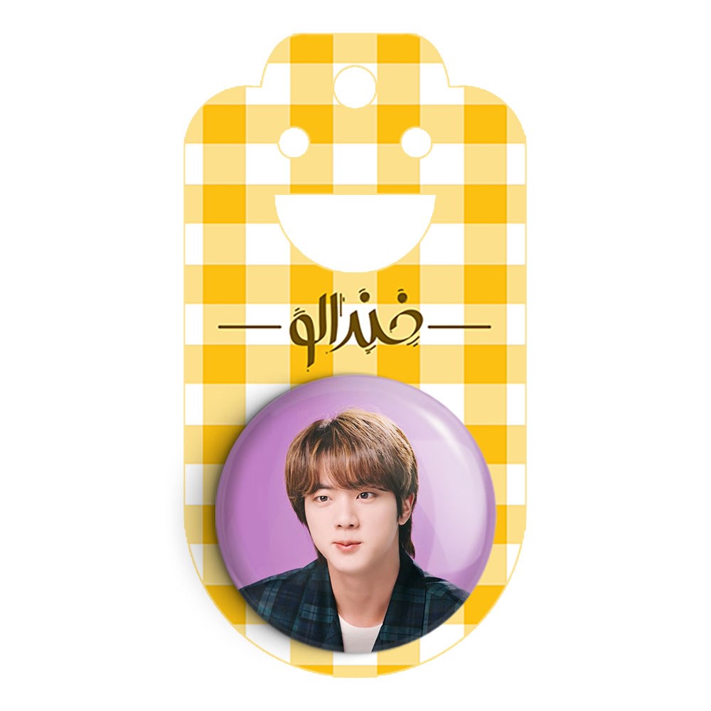 پیکسل 44 میلی متری جین Jin گروه بی تی اس BTS خندالو با روکش سلفون حرارتی مات مخملی ضدخش و قطعه پشتی رنگی تولید شده است.پلاستیکی پشت پیکسل با سوزن یک تکه ثابت و بدون لغزش و جا به جایی، ایستایی بسیار بهتری نسبت به پشتی فلزی پیکسل دارند که این مهم در تولید این محصول نیز رعایت شده است.