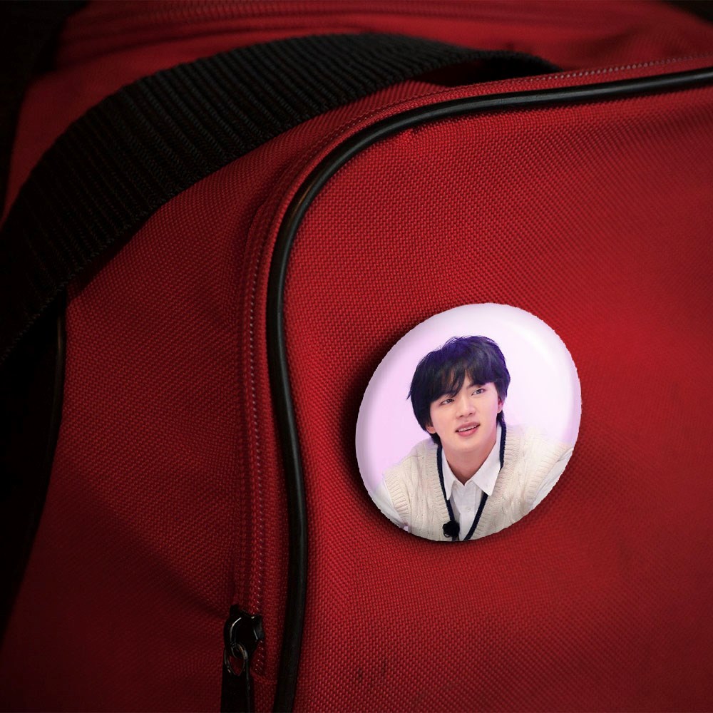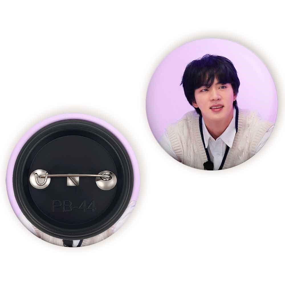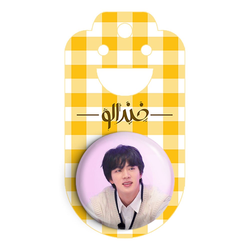 پیکسل 44 میلی متری جین Jin گروه بی تی اس BTS خندالو با روکش سلفون حرارتی مات مخملی ضدخش و قطعه پشتی رنگی تولید شده است.پلاستیکی پشت پیکسل با سوزن یک تکه ثابت و بدون لغزش و جا به جایی، ایستایی بسیار بهتری نسبت به پشتی فلزی پیکسل دارند که این مهم در تولید این محصول نیز رعایت شده است.
