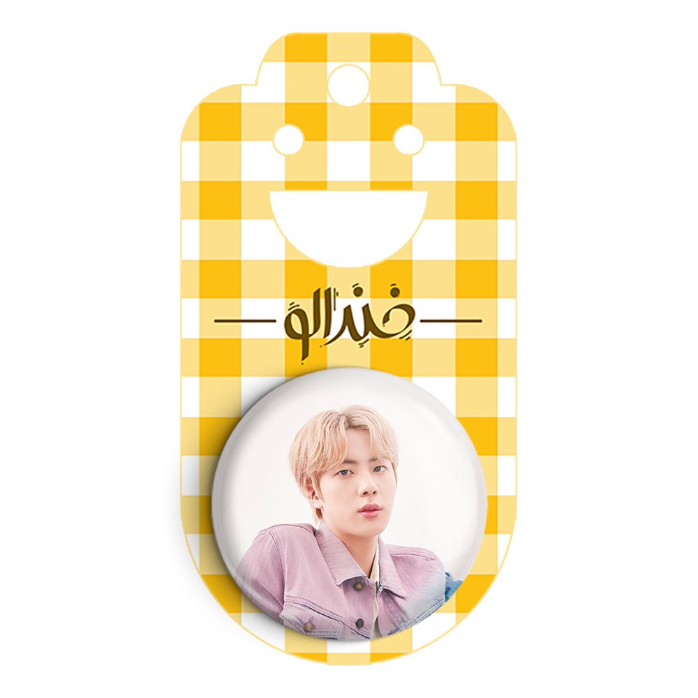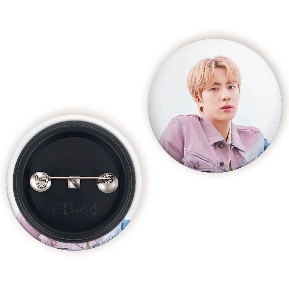 پیکسل 44 میلی متری جین Jin گروه بی تی اس BTS خندالو با روکش سلفون حرارتی مات مخملی ضدخش و قطعه پشتی رنگی تولید شده است.پلاستیکی پشت پیکسل با سوزن یک تکه ثابت و بدون لغزش و جا به جایی، ایستایی بسیار بهتری نسبت به پشتی فلزی پیکسل دارند که این مهم در تولید این محصول نیز رعایت شده است.