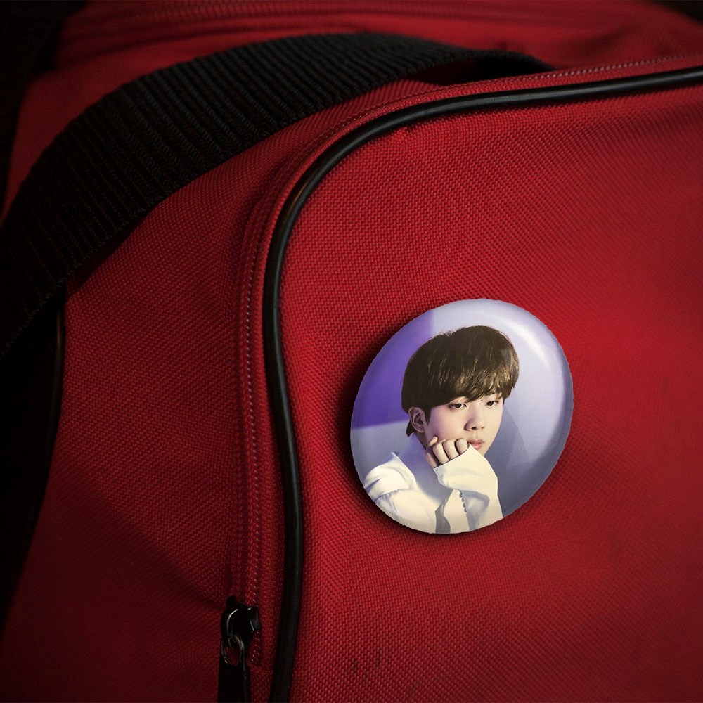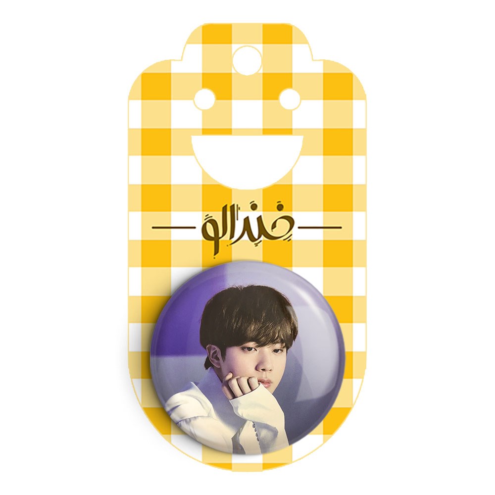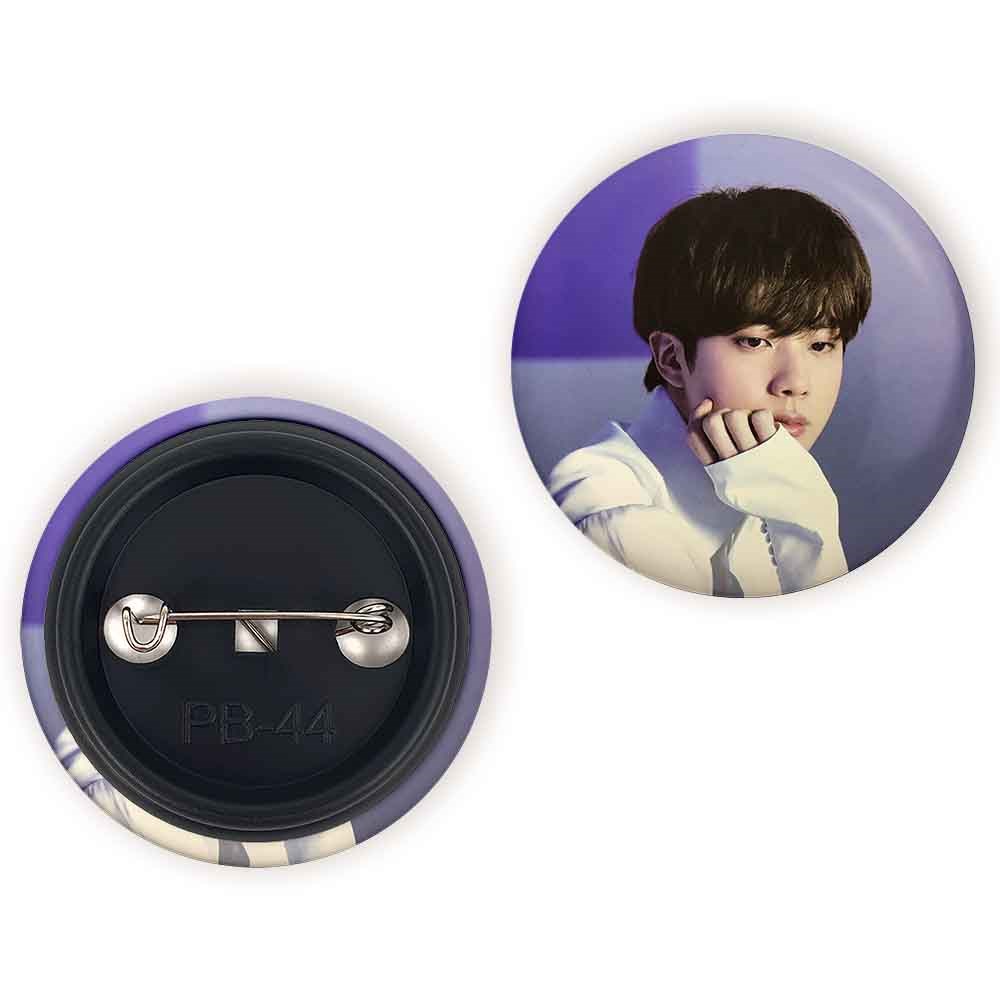 پیکسل 44 میلی متری جین Jin گروه بی تی اس BTS خندالو با روکش سلفون حرارتی مات مخملی ضدخش و قطعه پشتی رنگی تولید شده است.پلاستیکی پشت پیکسل با سوزن یک تکه ثابت و بدون لغزش و جا به جایی، ایستایی بسیار بهتری نسبت به پشتی فلزی پیکسل دارند که این مهم در تولید این محصول نیز رعایت شده است.
