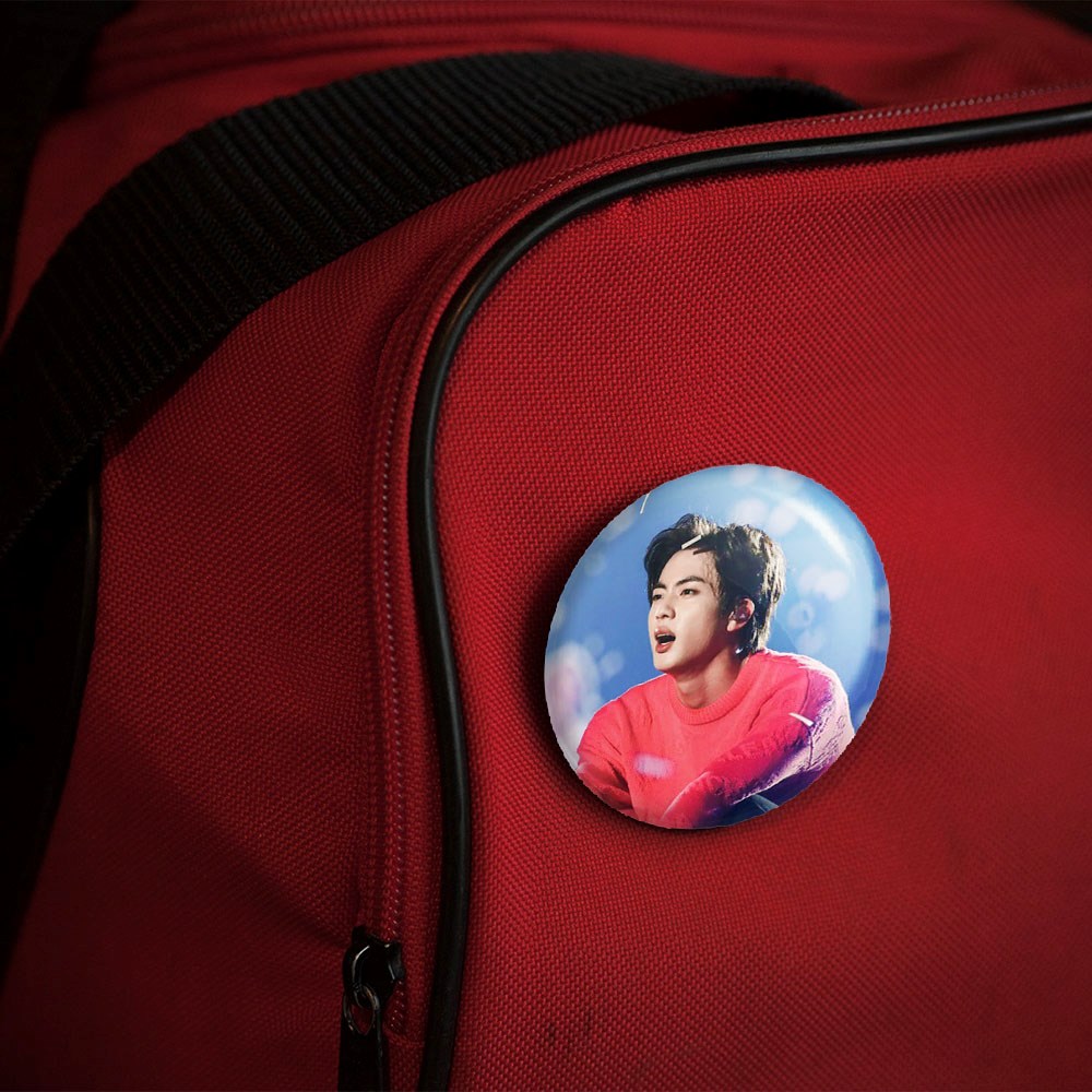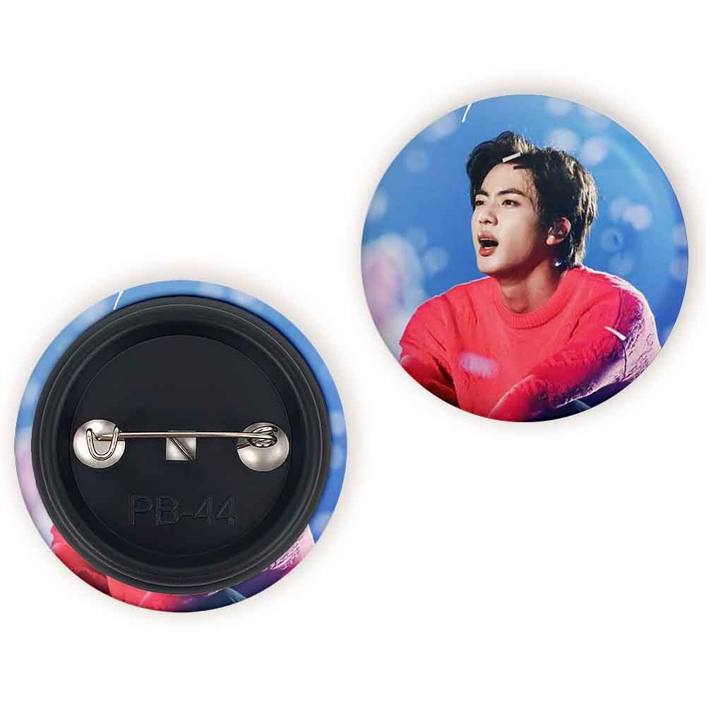 پیکسل 44 میلی متری جین Jin گروه بی تی اس BTS خندالو با روکش سلفون حرارتی مات مخملی ضدخش و قطعه پشتی رنگی تولید شده است.پلاستیکی پشت پیکسل با سوزن یک تکه ثابت و بدون لغزش و جا به جایی، ایستایی بسیار بهتری نسبت به پشتی فلزی پیکسل دارند که این مهم در تولید این محصول نیز رعایت شده است.