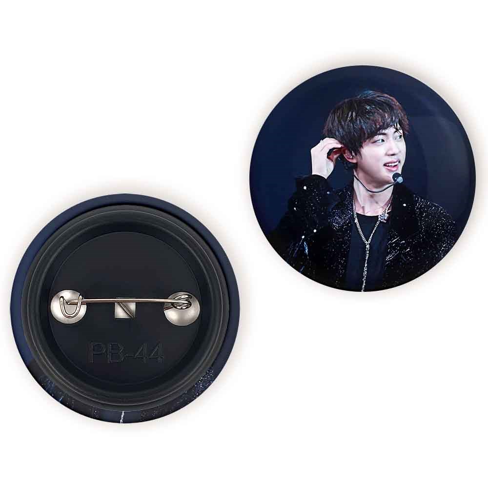 پیکسل 44 میلی متری جین Jin گروه بی تی اس BTS خندالو با روکش سلفون حرارتی مات مخملی ضدخش و قطعه پشتی رنگی تولید شده است.پلاستیکی پشت پیکسل با سوزن یک تکه ثابت و بدون لغزش و جا به جایی، ایستایی بسیار بهتری نسبت به پشتی فلزی پیکسل دارند که این مهم در تولید این محصول نیز رعایت شده است.