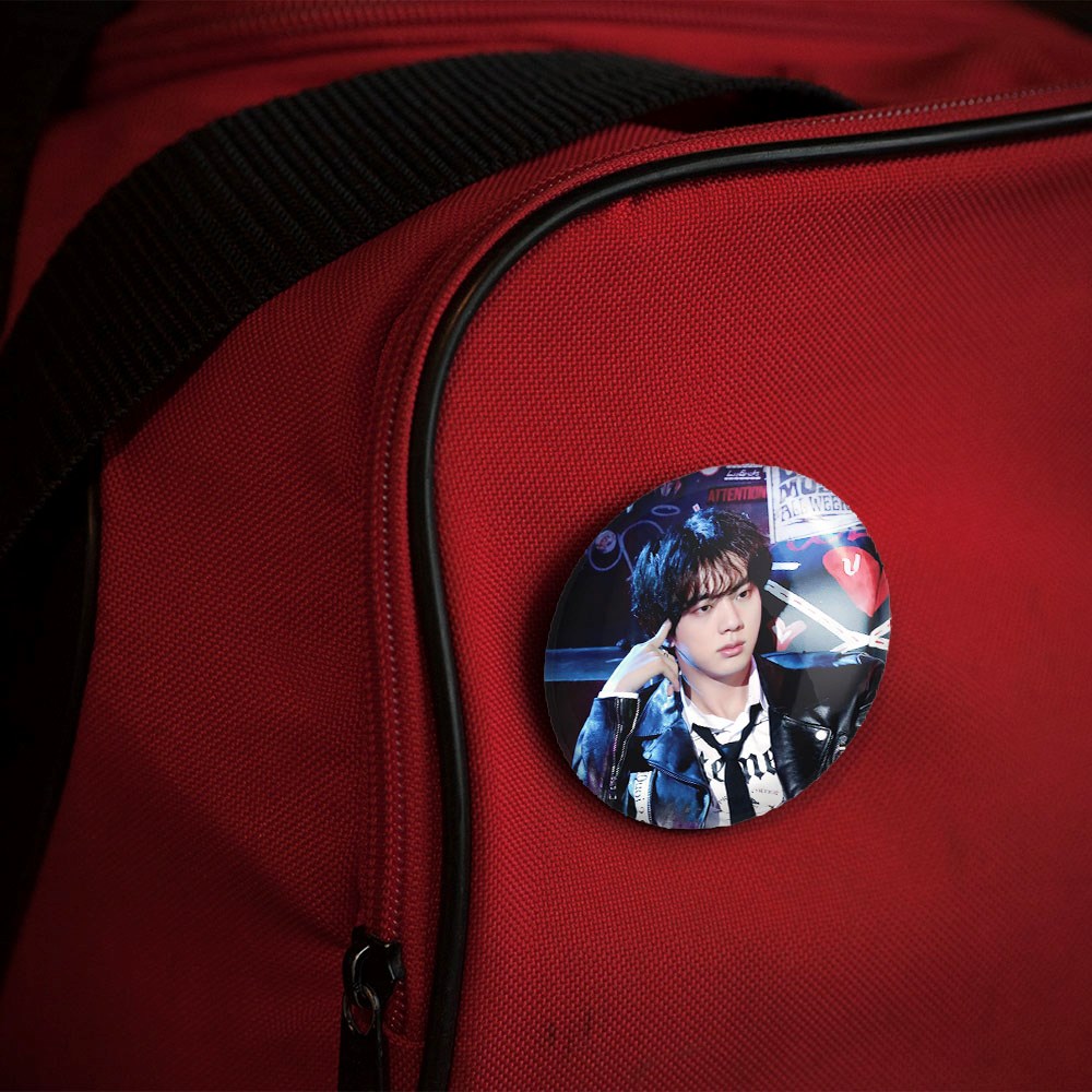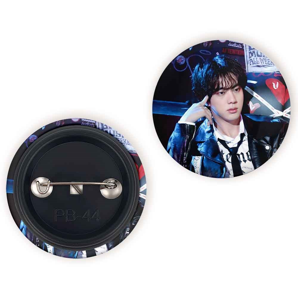 پیکسل 44 میلی متری جین Jin گروه بی تی اس BTS خندالو با روکش سلفون حرارتی مات مخملی ضدخش و قطعه پشتی رنگی تولید شده است.پلاستیکی پشت پیکسل با سوزن یک تکه ثابت و بدون لغزش و جا به جایی، ایستایی بسیار بهتری نسبت به پشتی فلزی پیکسل دارند که این مهم در تولید این محصول نیز رعایت شده است.
