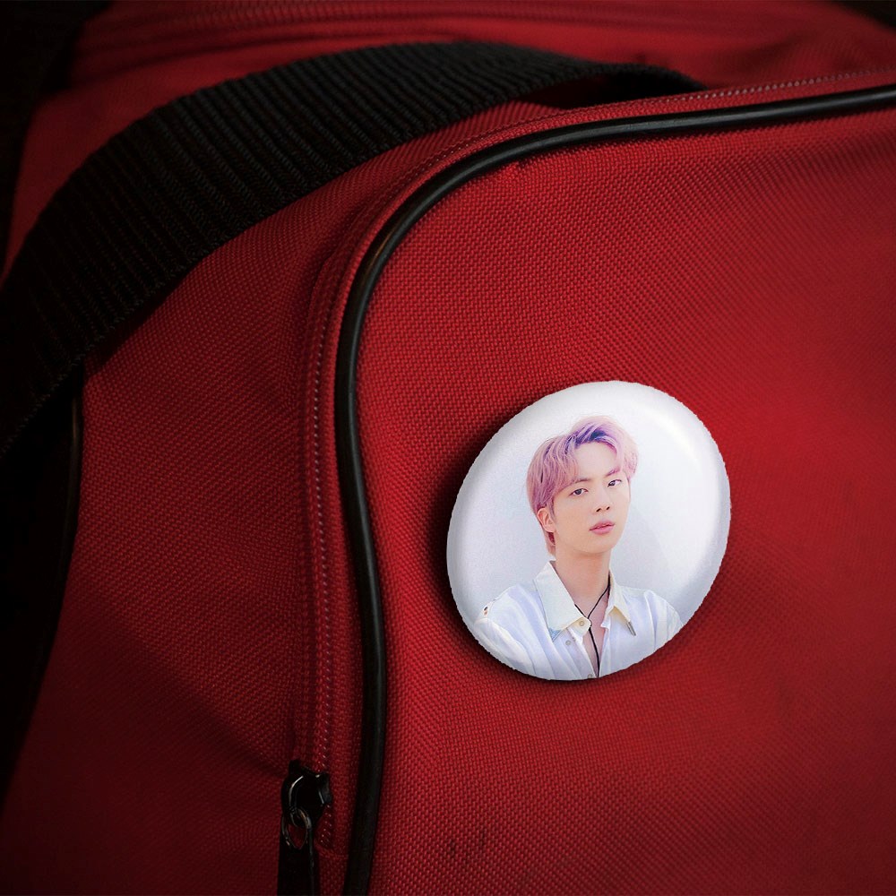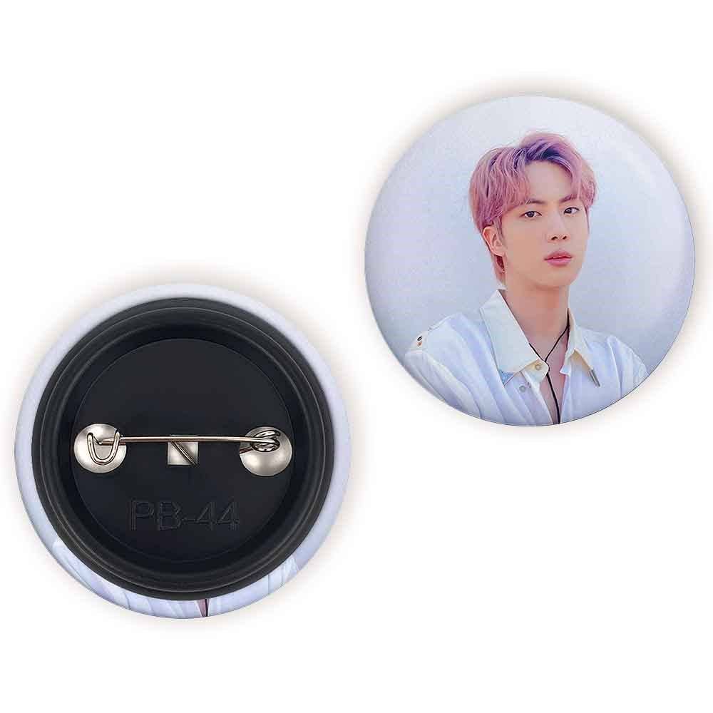 پیکسل 44 میلی متری جین Jin گروه بی تی اس BTS خندالو با روکش سلفون حرارتی مات مخملی ضدخش و قطعه پشتی رنگی تولید شده است.پلاستیکی پشت پیکسل با سوزن یک تکه ثابت و بدون لغزش و جا به جایی، ایستایی بسیار بهتری نسبت به پشتی فلزی پیکسل دارند که این مهم در تولید این محصول نیز رعایت شده است.