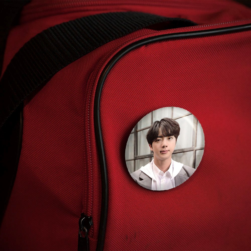 پیکسل 44 میلی متری جین Jin گروه بی تی اس BTS خندالو با روکش سلفون حرارتی مات مخملی ضدخش و قطعه پشتی رنگی تولید شده است. قطعات پلاستیکی پشت پیکسل با سوزن یک تکه ثابت و بدون لغزش و جا به جایی، ایستایی بسیار بهتری نسبت به پشتی فلزی پیکسل دارند که این مهم در تولید این محصول نیز رعایت شده است. چاپ پیکسل جین Jin گروه بی تی اس BTS نیز با دستگاه های استاندارد و با بهترین سطح کیفی صورت گرفته و طرح با شفافیتی مثال زدنی و با سلفونی بدون شکست نور بر روی پیکسل نقش بسته است. همچنین بسته بندی جذاب و مینیمال پیکسل جین Jin گروه بی تی اس BTS ، آنها را مناسب هدیه کرده است.