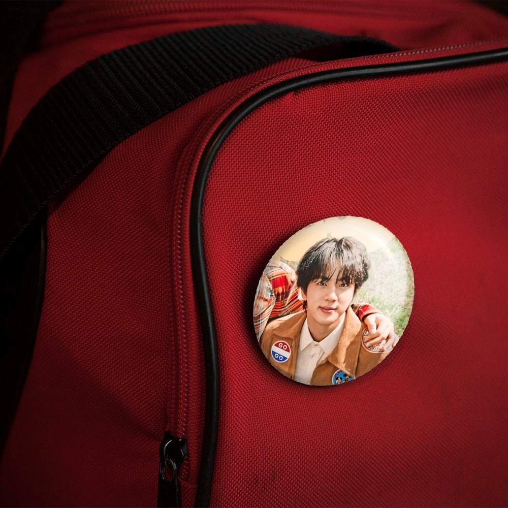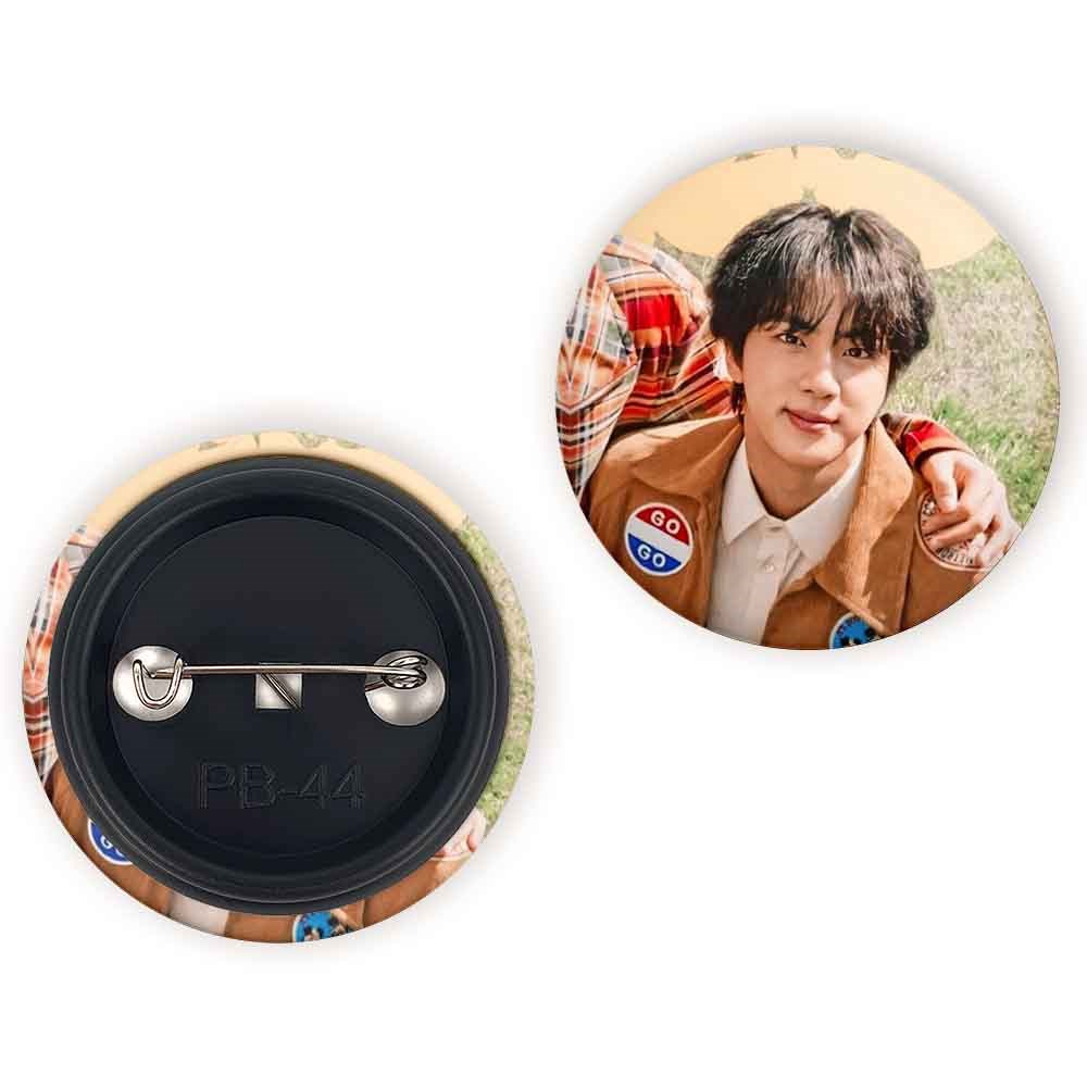پیکسل 44 میلی متری جین Jin گروه بی تی اس BTS خندالو با روکش سلفون حرارتی مات مخملی ضدخش و قطعه پشتی رنگی تولید شده است.پلاستیکی پشت پیکسل با سوزن یک تکه ثابت و بدون لغزش و جا به جایی، ایستایی بسیار بهتری نسبت به پشتی فلزی پیکسل دارند که این مهم در تولید این محصول نیز رعایت شده است.