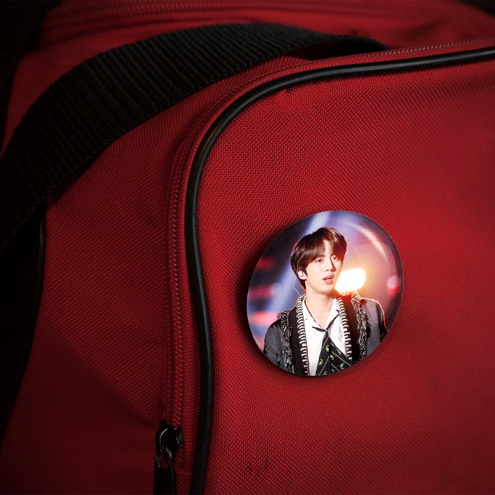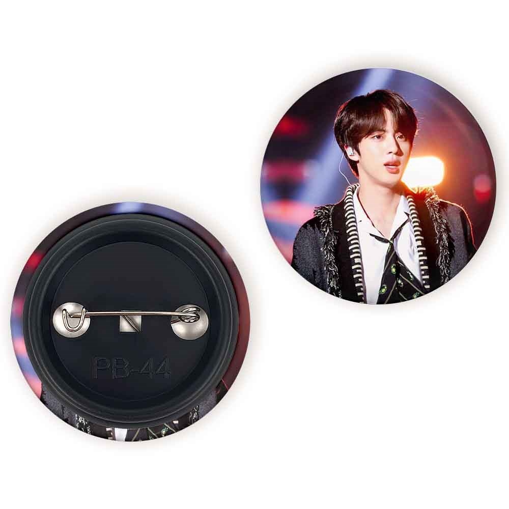 پیکسل 44 میلی متری جین Jin گروه بی تی اس BTS خندالو با روکش سلفون حرارتی مات مخملی ضدخش و قطعه پشتی رنگی تولید شده است.پلاستیکی پشت پیکسل با سوزن یک تکه ثابت و بدون لغزش و جا به جایی، ایستایی بسیار بهتری نسبت به پشتی فلزی پیکسل دارند که این مهم در تولید این محصول نیز رعایت شده است.