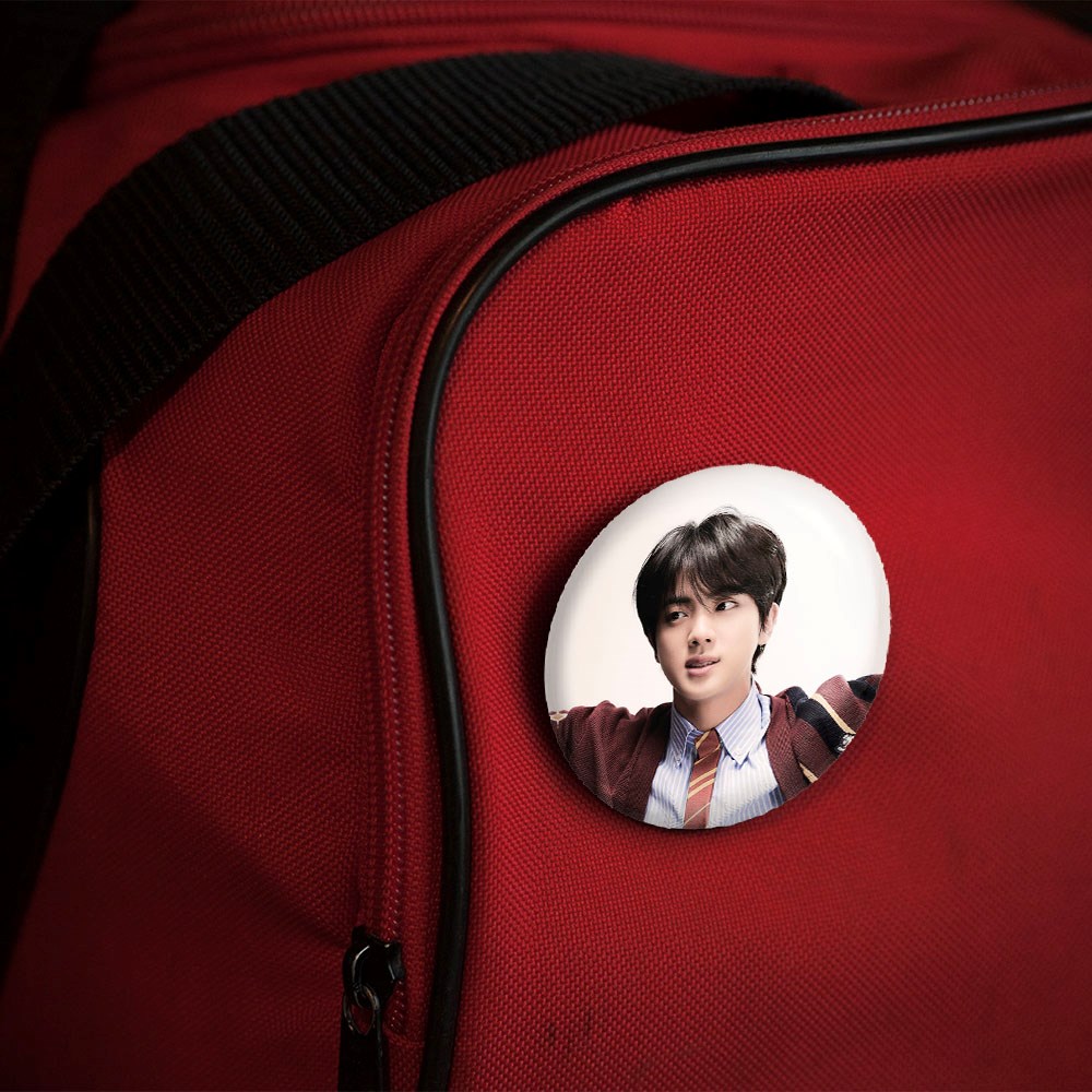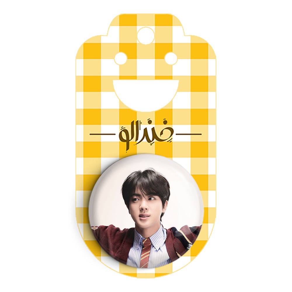 پیکسل 44 میلی متری جین Jin گروه بی تی اس BTS خندالو با روکش سلفون حرارتی مات مخملی ضدخش و قطعه پشتی رنگی تولید شده است.پلاستیکی پشت پیکسل با سوزن یک تکه ثابت و بدون لغزش و جا به جایی، ایستایی بسیار بهتری نسبت به پشتی فلزی پیکسل دارند که این مهم در تولید این محصول نیز رعایت شده است.