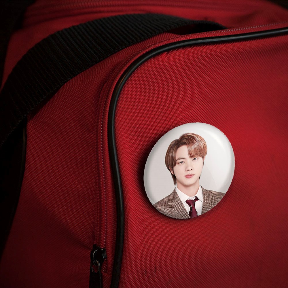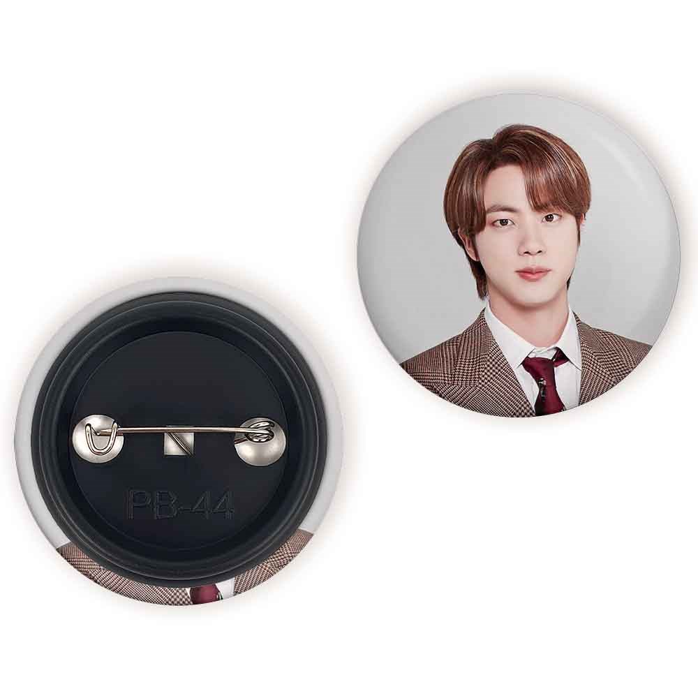 پیکسل 44 میلی متری جین Jin گروه بی تی اس BTS خندالو با روکش سلفون حرارتی مات مخملی ضدخش و قطعه پشتی رنگی تولید شده است.پلاستیکی پشت پیکسل با سوزن یک تکه ثابت و بدون لغزش و جا به جایی، ایستایی بسیار بهتری نسبت به پشتی فلزی پیکسل دارند که این مهم در تولید این محصول نیز رعایت شده است.