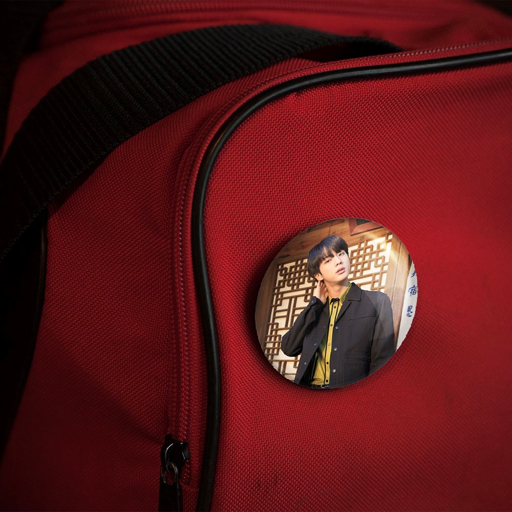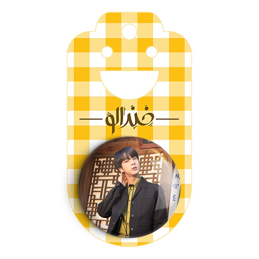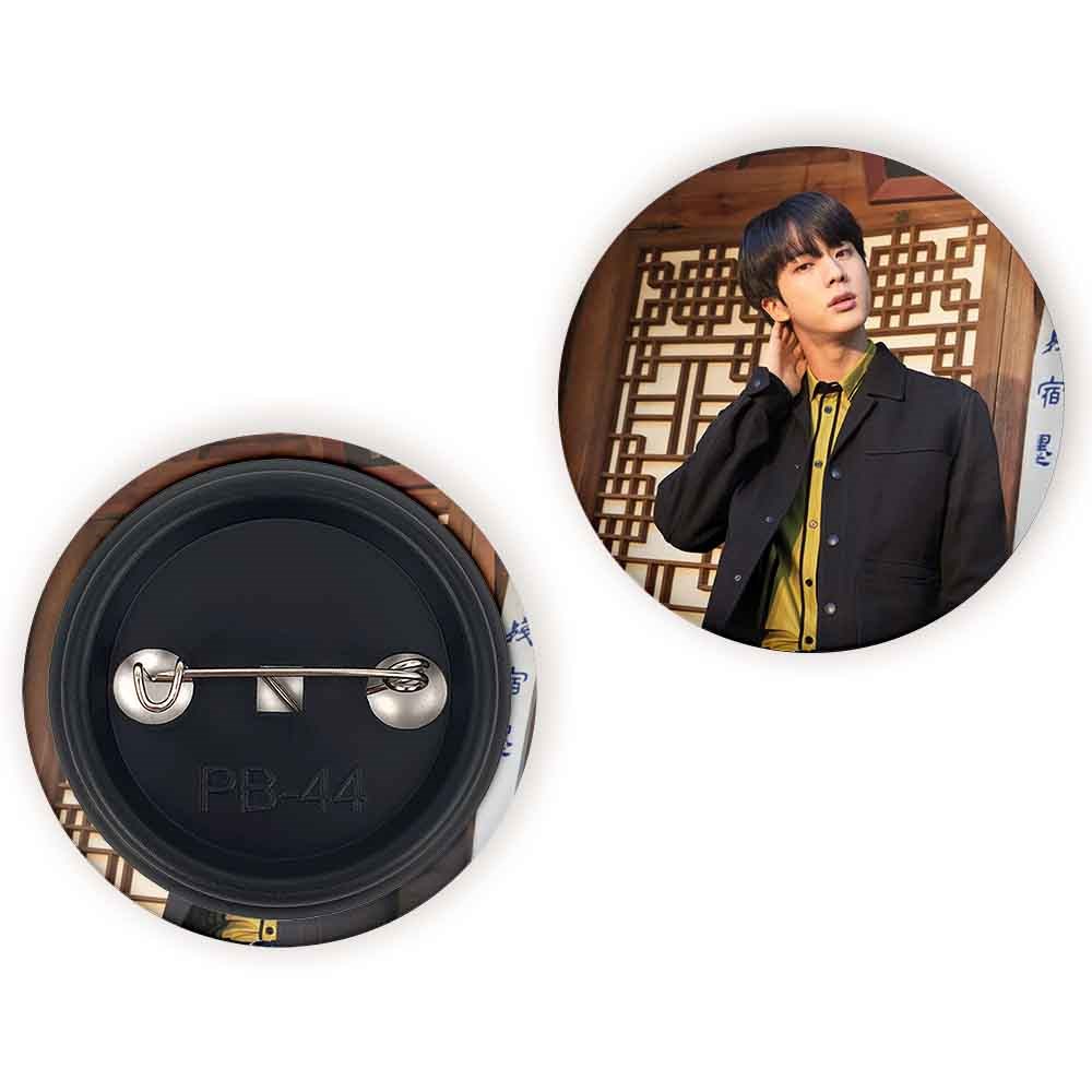 پیکسل 44 میلی متری جین Jin گروه بی تی اس BTS خندالو با روکش سلفون حرارتی مات مخملی ضدخش و قطعه پشتی رنگی تولید شده است.پلاستیکی پشت پیکسل با سوزن یک تکه ثابت و بدون لغزش و جا به جایی، ایستایی بسیار بهتری نسبت به پشتی فلزی پیکسل دارند که این مهم در تولید این محصول نیز رعایت شده است.