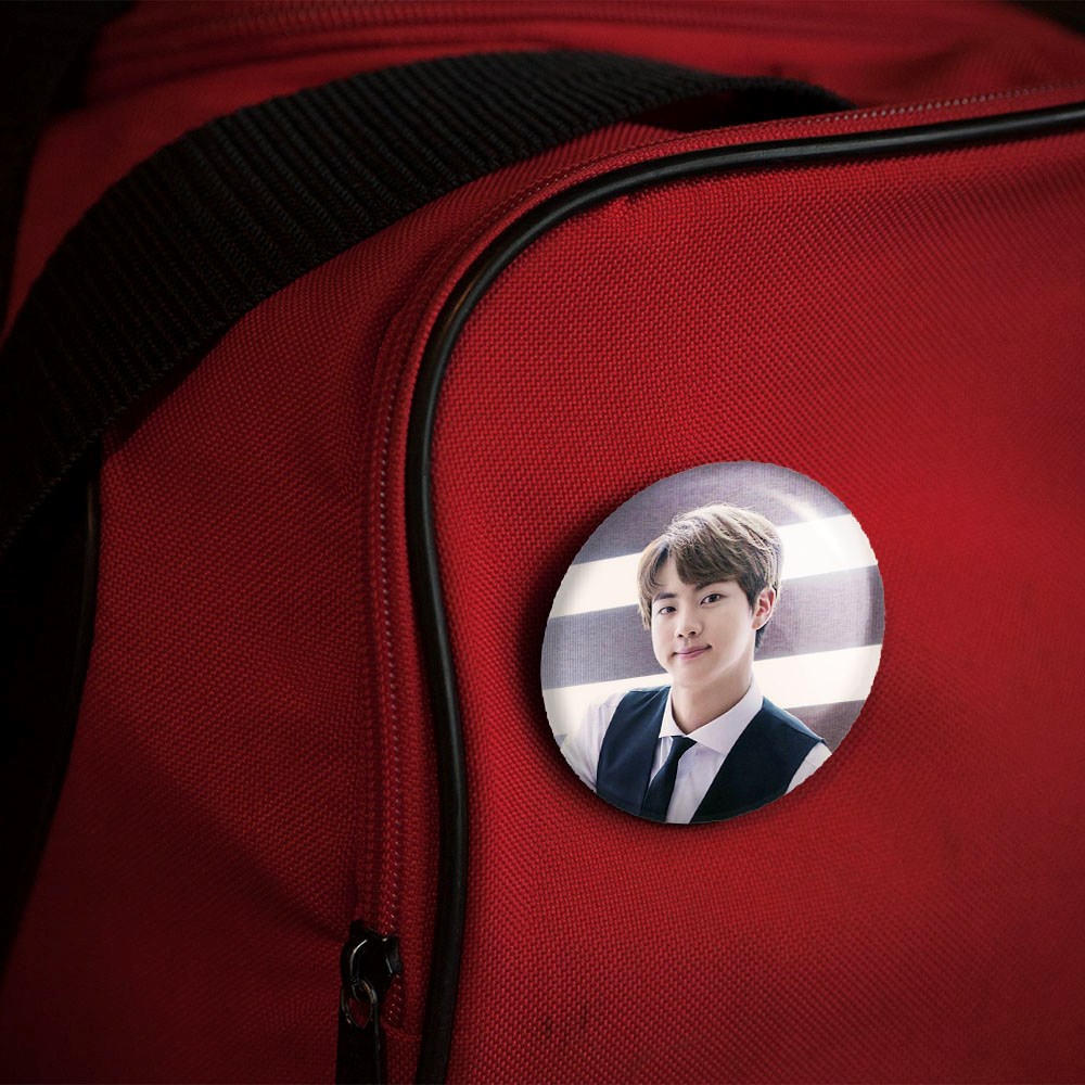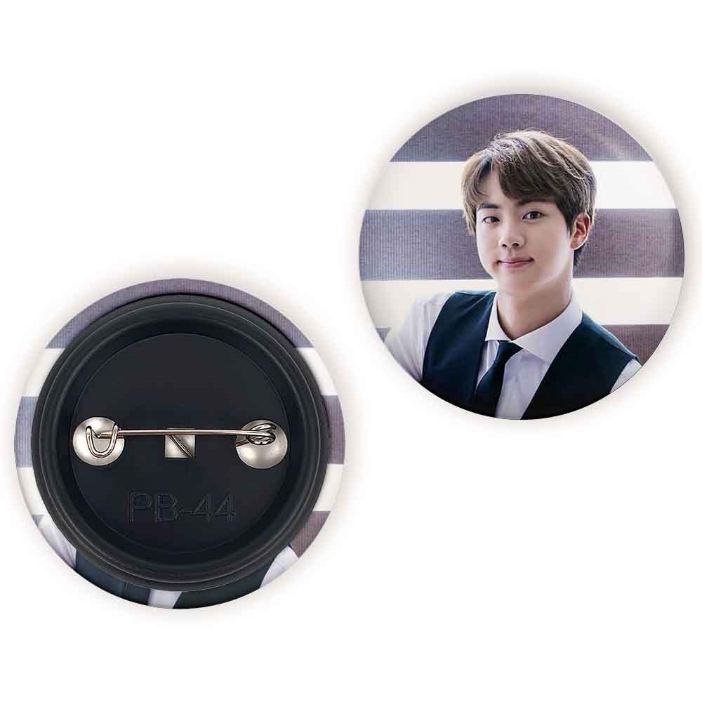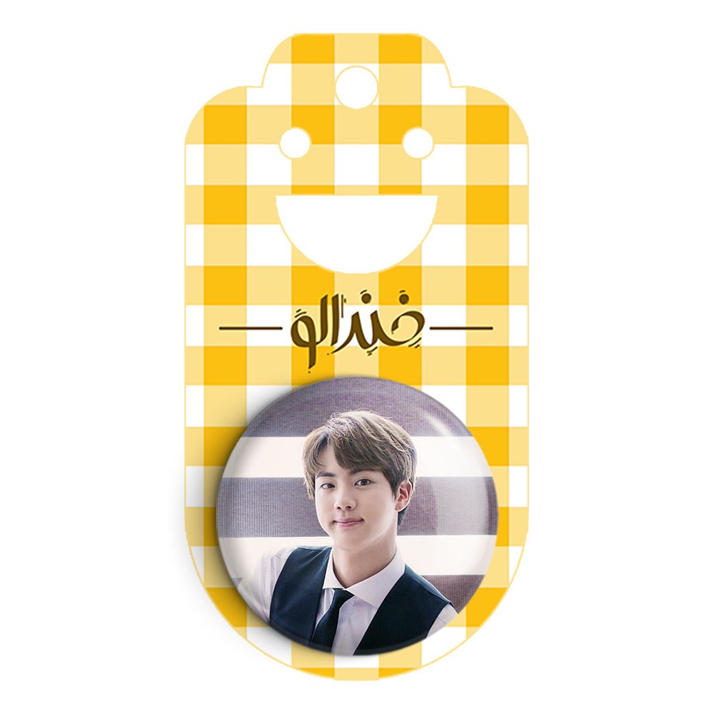 پیکسل 44 میلی متری جین Jin گروه بی تی اس BTS خندالو با روکش سلفون حرارتی مات مخملی ضدخش و قطعه پشتی رنگی تولید شده است.پلاستیکی پشت پیکسل با سوزن یک تکه ثابت و بدون لغزش و جا به جایی، ایستایی بسیار بهتری نسبت به پشتی فلزی پیکسل دارند که این مهم در تولید این محصول نیز رعایت شده است.