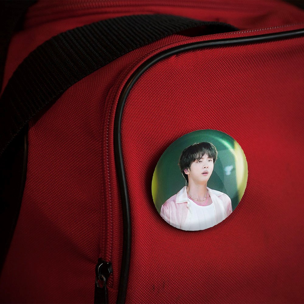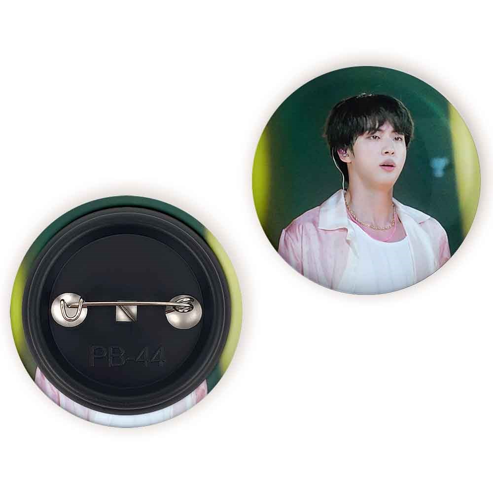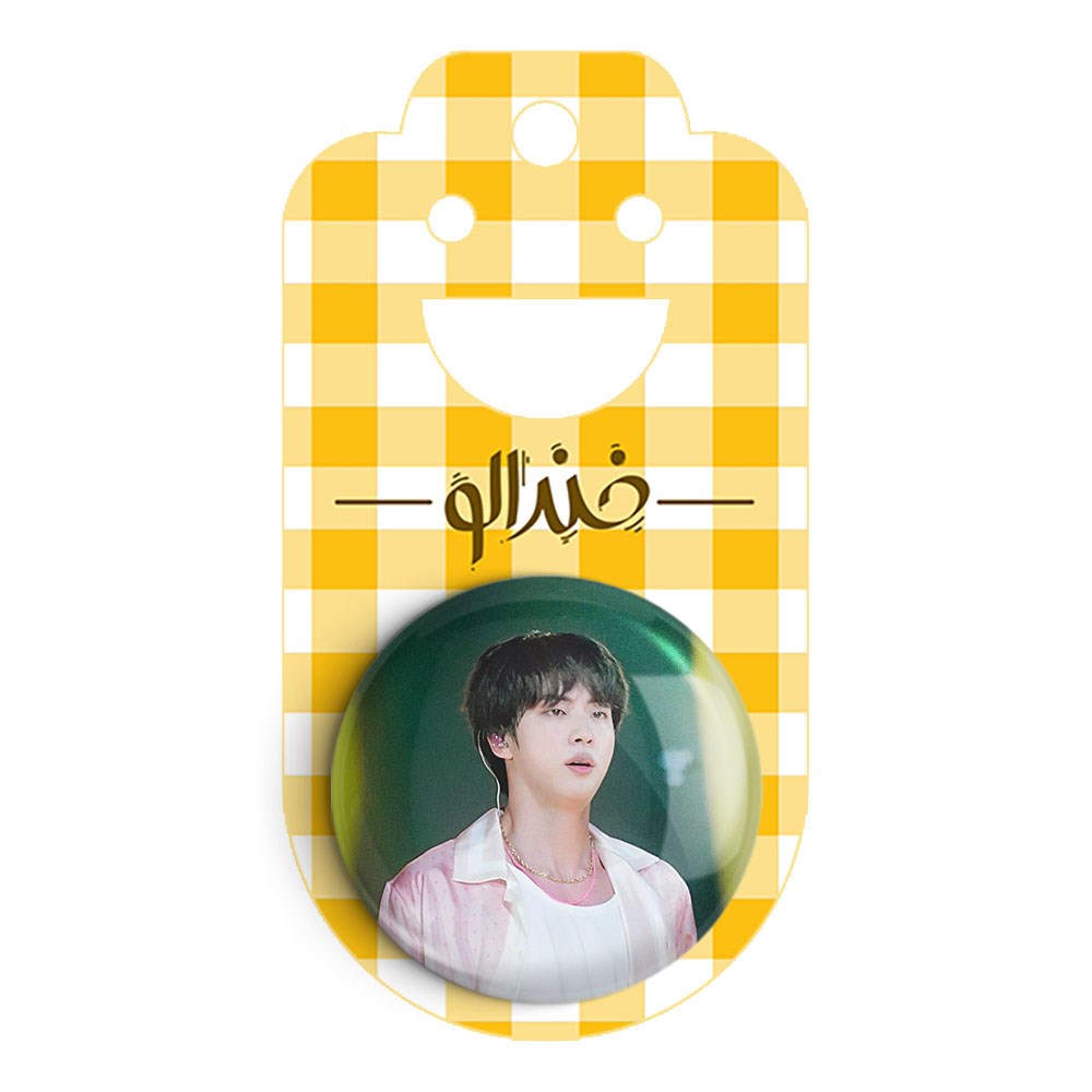 پیکسل 44 میلی متری جین Jin گروه بی تی اس BTS خندالو با روکش سلفون حرارتی مات مخملی ضدخش و قطعه پشتی رنگی تولید شده است.پلاستیکی پشت پیکسل با سوزن یک تکه ثابت و بدون لغزش و جا به جایی، ایستایی بسیار بهتری نسبت به پشتی فلزی پیکسل دارند که این مهم در تولید این محصول نیز رعایت شده است.