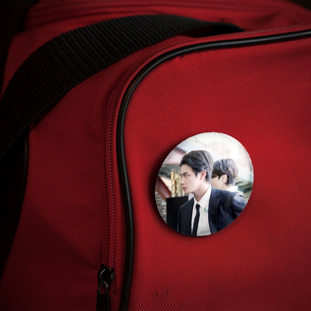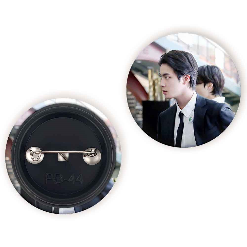 پیکسل 44 میلی متری جین Jin گروه بی تی اس BTS خندالو با روکش سلفون حرارتی مات مخملی ضدخش و قطعه پشتی رنگی تولید شده است.پلاستیکی پشت پیکسل با سوزن یک تکه ثابت و بدون لغزش و جا به جایی، ایستایی بسیار بهتری نسبت به پشتی فلزی پیکسل دارند که این مهم در تولید این محصول نیز رعایت شده است.