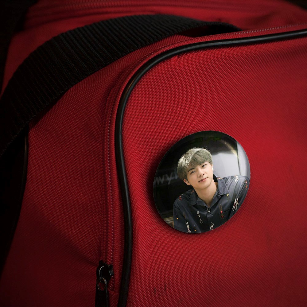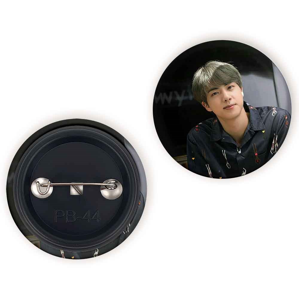 پیکسل 44 میلی متری جین Jin گروه بی تی اس BTS خندالو با روکش سلفون حرارتی مات مخملی ضدخش و قطعه پشتی رنگی تولید شده است.پلاستیکی پشت پیکسل با سوزن یک تکه ثابت و بدون لغزش و جا به جایی، ایستایی بسیار بهتری نسبت به پشتی فلزی پیکسل دارند که این مهم در تولید این محصول نیز رعایت شده است.