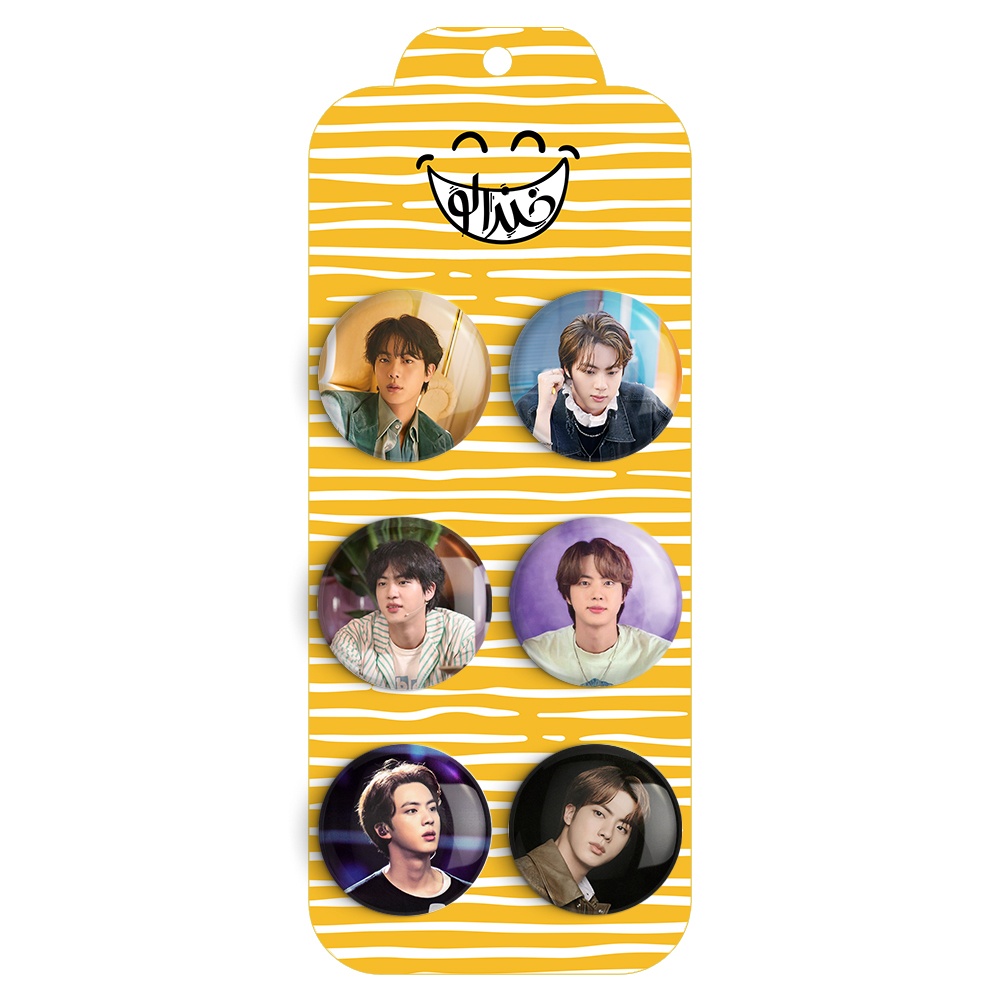 مجموعه 6 عددی پیکسل خندالو طرح جین (Jin) گروه BTS با روکش سلفون حرارتی براق ضدخش و قطعه پشتی رنگی تولید شده است. قطعات پشتی از میان 6 رنگ سفید، مشکی، صورتی، زرد، آبی و قرمز که با توجه به نوع و رنگبندی طرح روی پیکسل انتخاب شده اند تولید می شود و در هر بسته بندی مطابق عکس محصول می باشد.