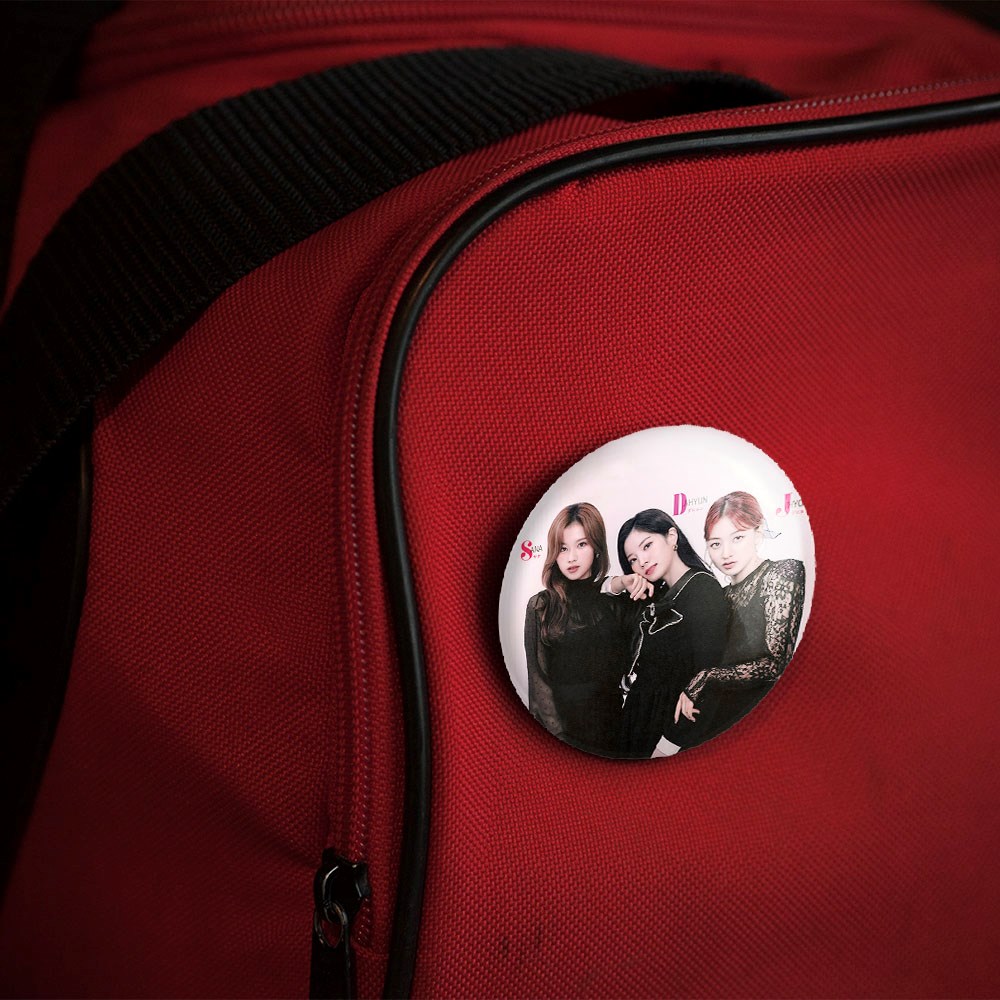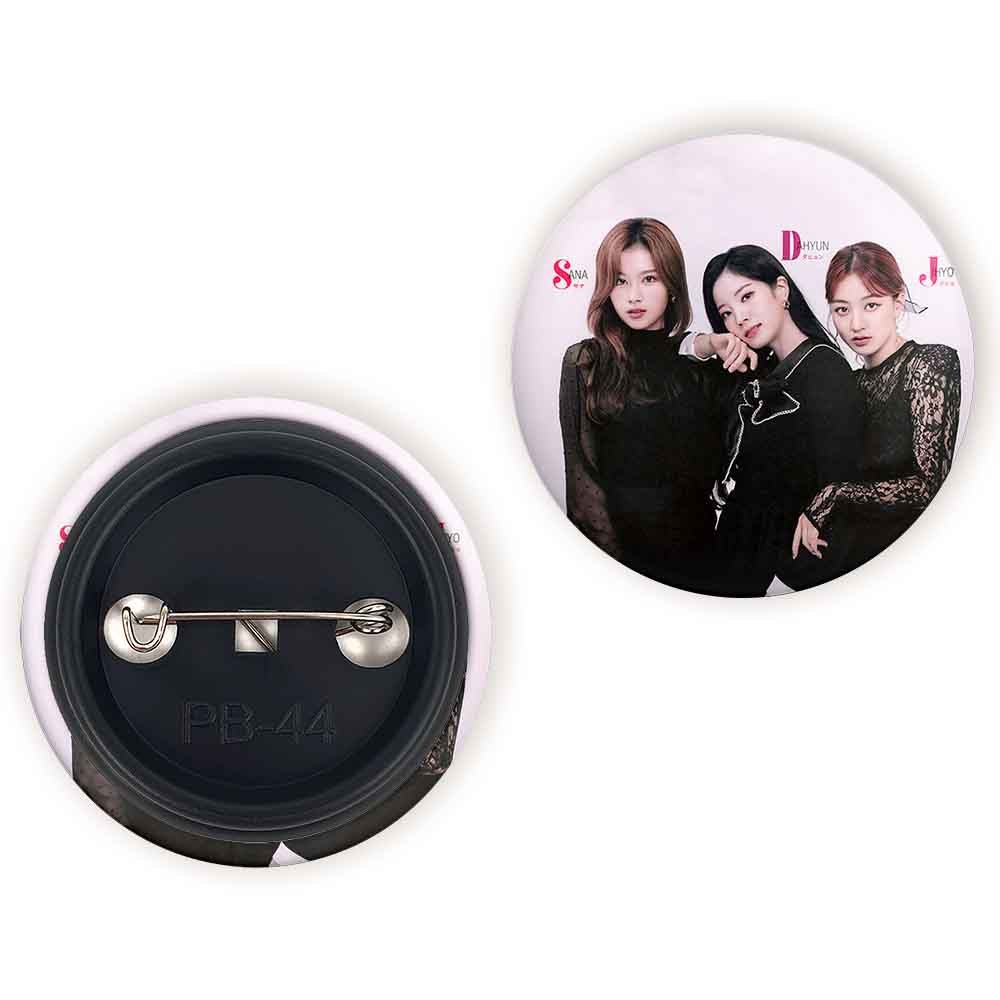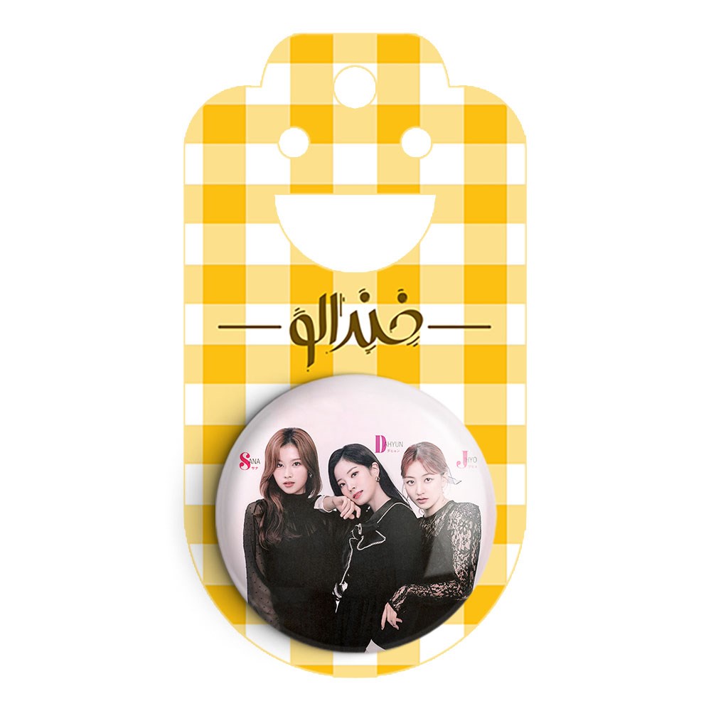 پیکسل 44 میلی متری جیهیو و داهیون و سانا گروه توایس TWICE خندالو با روکش سلفون حرارتی مات مخملی ضدخش و قطعه پشتی رنگی تولید شده است.پلاستیکی پشت پیکسل با سوزن یک تکه ثابت و بدون لغزش و جا به جایی، ایستایی بسیار بهتری نسبت به پشتی فلزی پیکسل دارند که این مهم در تولید این محصول نیز رعایت شده است.