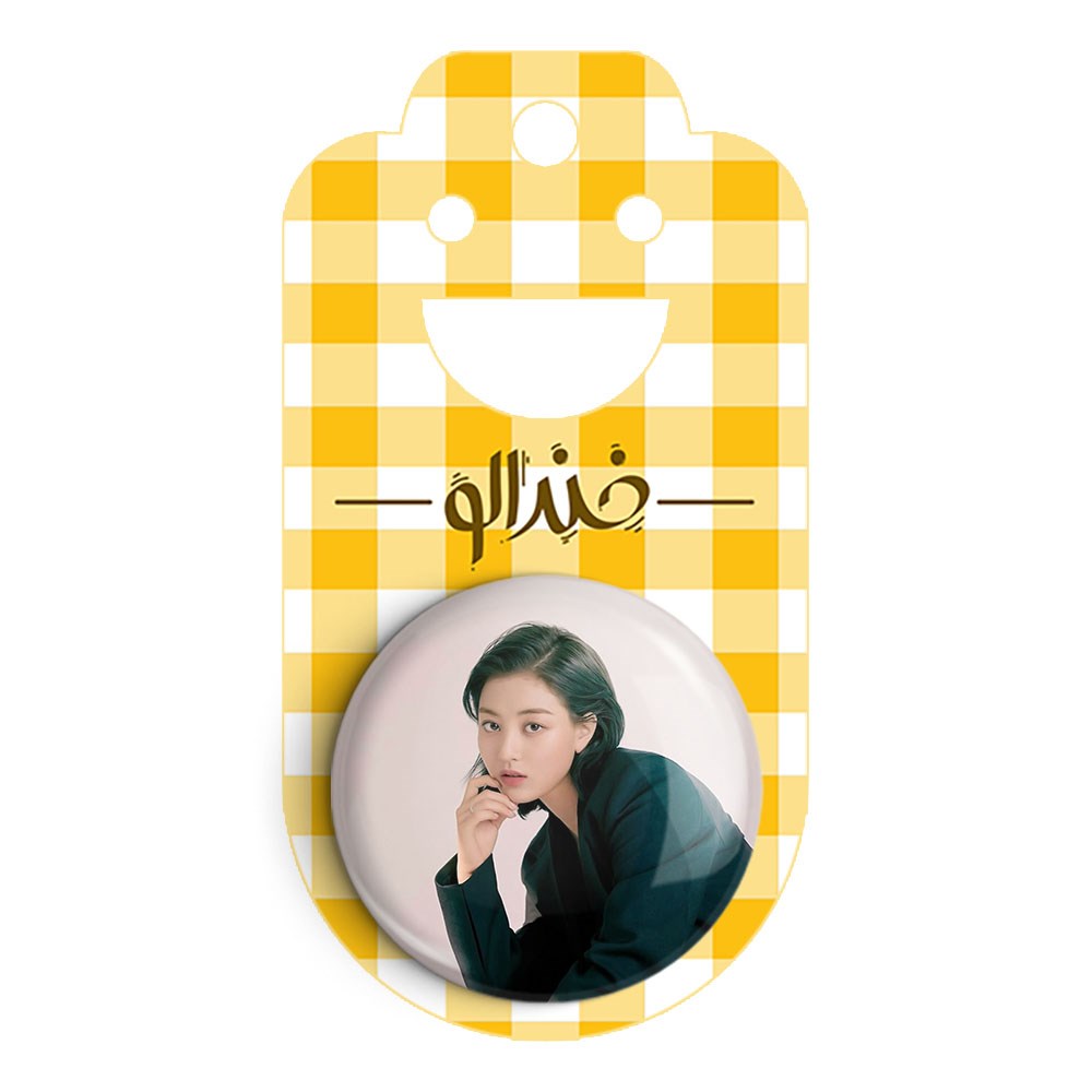 پیکسل 44 میلی متری جیهیو گروه توایس TWICE خندالو با روکش سلفون حرارتی مات مخملی ضدخش و قطعه پشتی رنگی تولید شده است.پلاستیکی پشت پیکسل با سوزن یک تکه ثابت و بدون لغزش و جا به جایی، ایستایی بسیار بهتری نسبت به پشتی فلزی پیکسل دارند که این مهم در تولید این محصول نیز رعایت شده است.