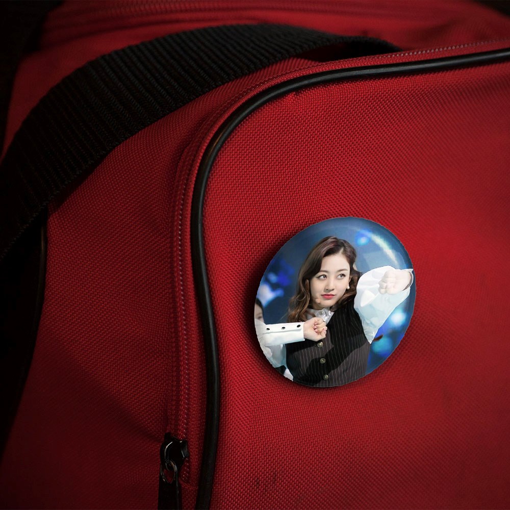 پیکسل 44 میلی متری جیهیو گروه توایس TWICE خندالو با روکش سلفون حرارتی مات مخملی ضدخش و قطعه پشتی رنگی تولید شده است.پلاستیکی پشت پیکسل با سوزن یک تکه ثابت و بدون لغزش و جا به جایی، ایستایی بسیار بهتری نسبت به پشتی فلزی پیکسل دارند که این مهم در تولید این محصول نیز رعایت شده است.