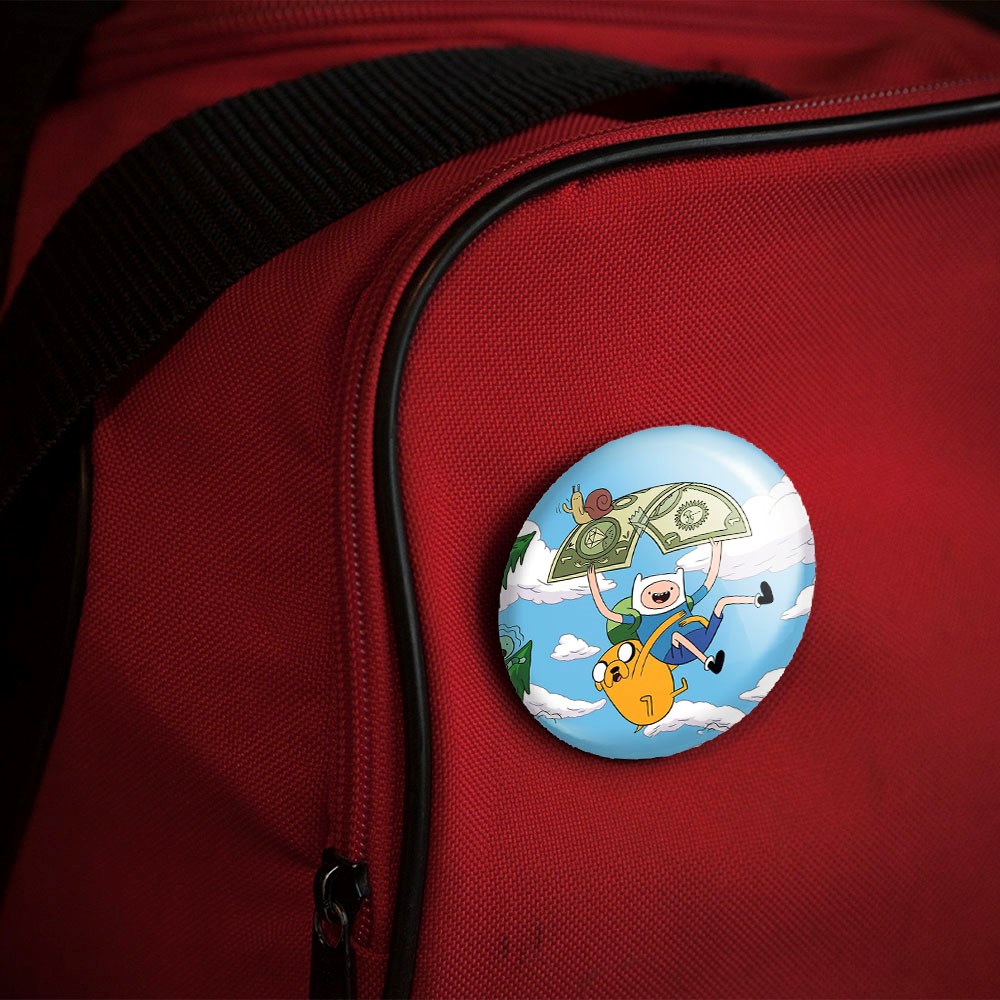 پیکسل 44 میلی متری جیک و فین وقت ماجراجویی Adventure Time خندالو با روکش سلفون حرارتی مات مخملی ضدخش و قطعه پشتی رنگی تولید شده است.پلاستیکی پشت پیکسل با سوزن یک تکه ثابت و بدون لغزش و جا به جایی، ایستایی بسیار بهتری نسبت به پشتی فلزی پیکسل دارند که این مهم در تولید این محصول نیز رعایت شده است.