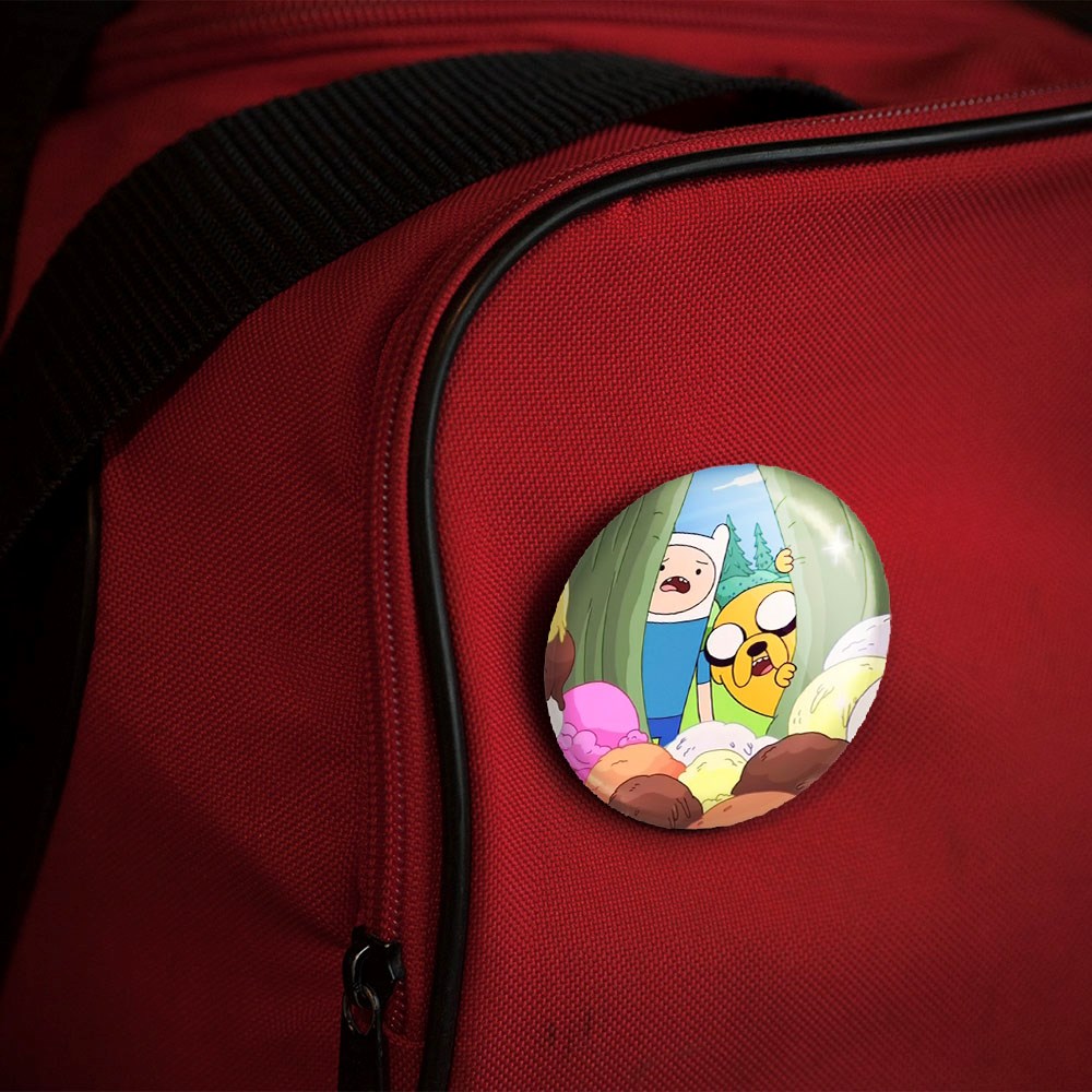 پیکسل 44 میلی متری جیک و فین وقت ماجراجویی Adventure Time خندالو با روکش سلفون حرارتی مات مخملی ضدخش و قطعه پشتی رنگی تولید شده است.پلاستیکی پشت پیکسل با سوزن یک تکه ثابت و بدون لغزش و جا به جایی، ایستایی بسیار بهتری نسبت به پشتی فلزی پیکسل دارند که این مهم در تولید این محصول نیز رعایت شده است.