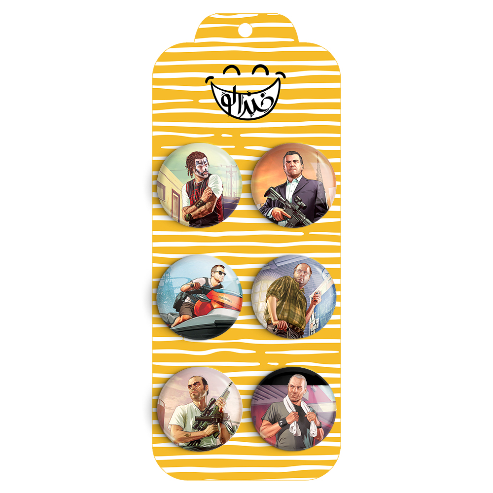 مجموعه 6 عددی پیکسل خندالو طرح جی تی ای وی با روکش سلفون حرارتی براق ضدخش و قطعه پشتی رنگی تولید شده است. قطعات پشتی از میان 6 رنگ سفید، مشکی، صورتی، زرد، آبی و قرمز که با توجه به نوع و رنگبندی طرح روی پیکسل انتخاب شده اند تولید می شود و در هر بسته بندی مطابق عکس محصول می باشد.