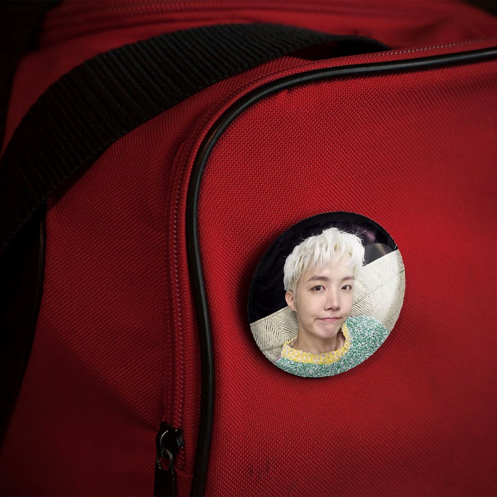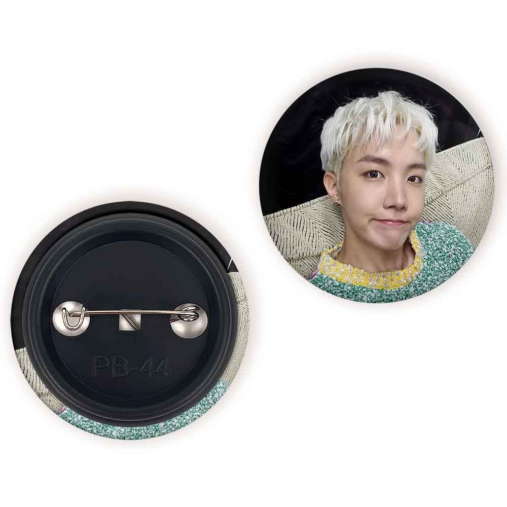 پیکسل 44 میلی متری جی هوپ J Hope گروه بی تی اس BTS خندالو با روکش سلفون حرارتی مات مخملی ضدخش و قطعه پشتی رنگی تولید شده است.پلاستیکی پشت پیکسل با سوزن یک تکه ثابت و بدون لغزش و جا به جایی، ایستایی بسیار بهتری نسبت به پشتی فلزی پیکسل دارند که این مهم در تولید این محصول نیز رعایت شده است.