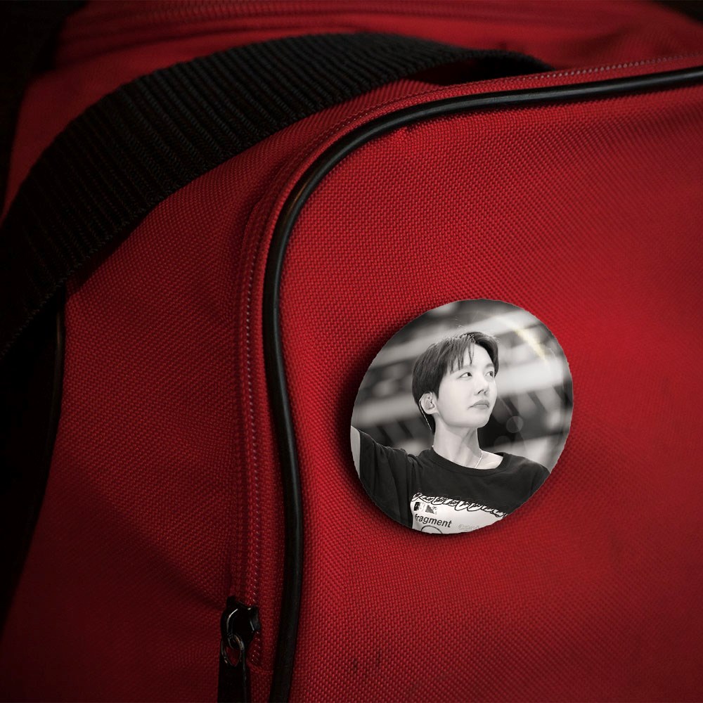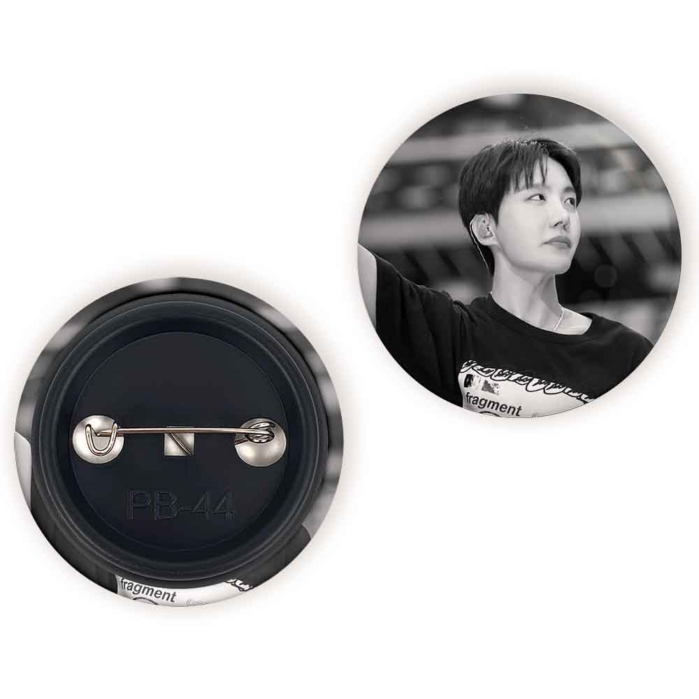 پیکسل 44 میلی متری جی هوپ J Hope گروه بی تی اس BTS خندالو با روکش سلفون حرارتی مات مخملی ضدخش و قطعه پشتی رنگی تولید شده است.پلاستیکی پشت پیکسل با سوزن یک تکه ثابت و بدون لغزش و جا به جایی، ایستایی بسیار بهتری نسبت به پشتی فلزی پیکسل دارند که این مهم در تولید این محصول نیز رعایت شده است.
