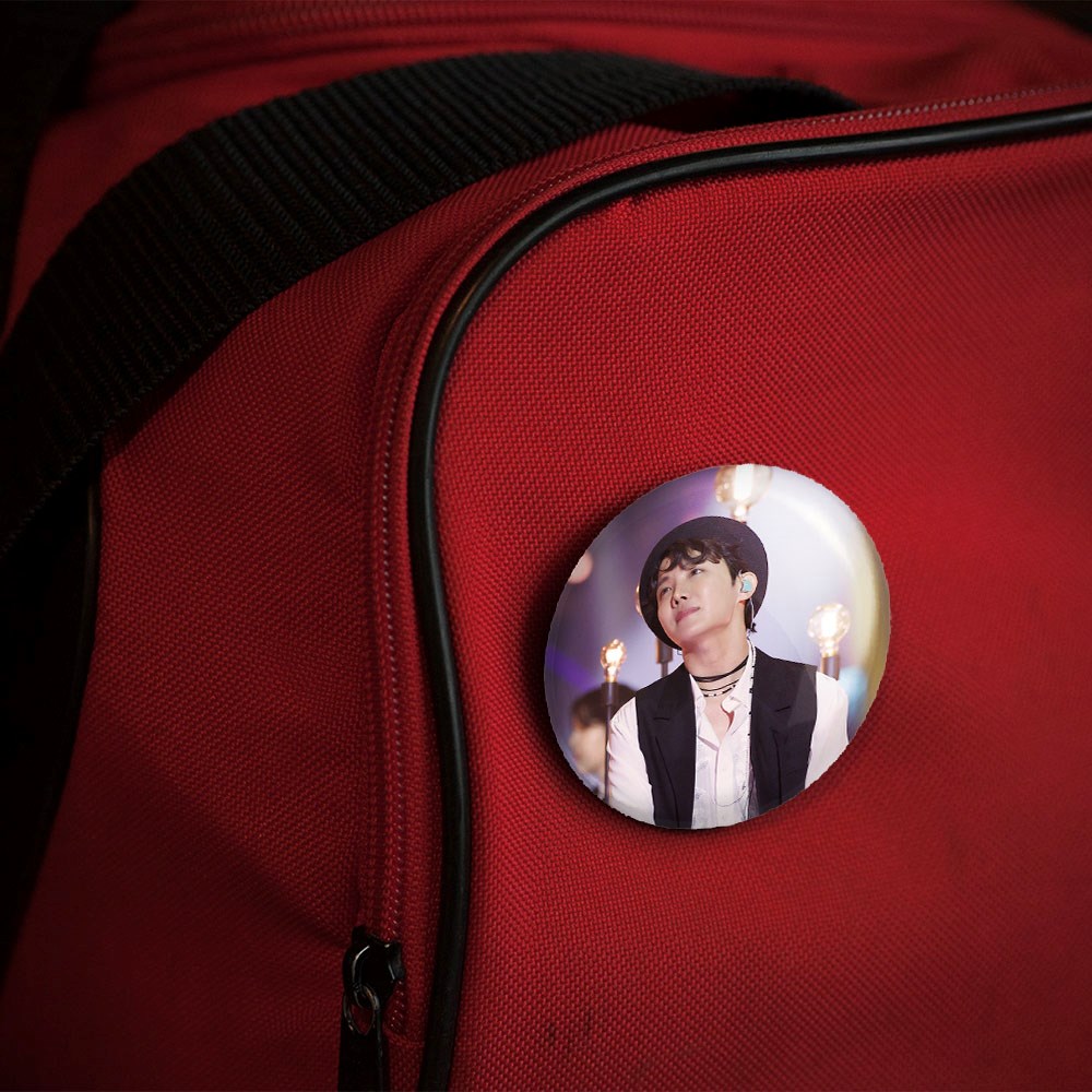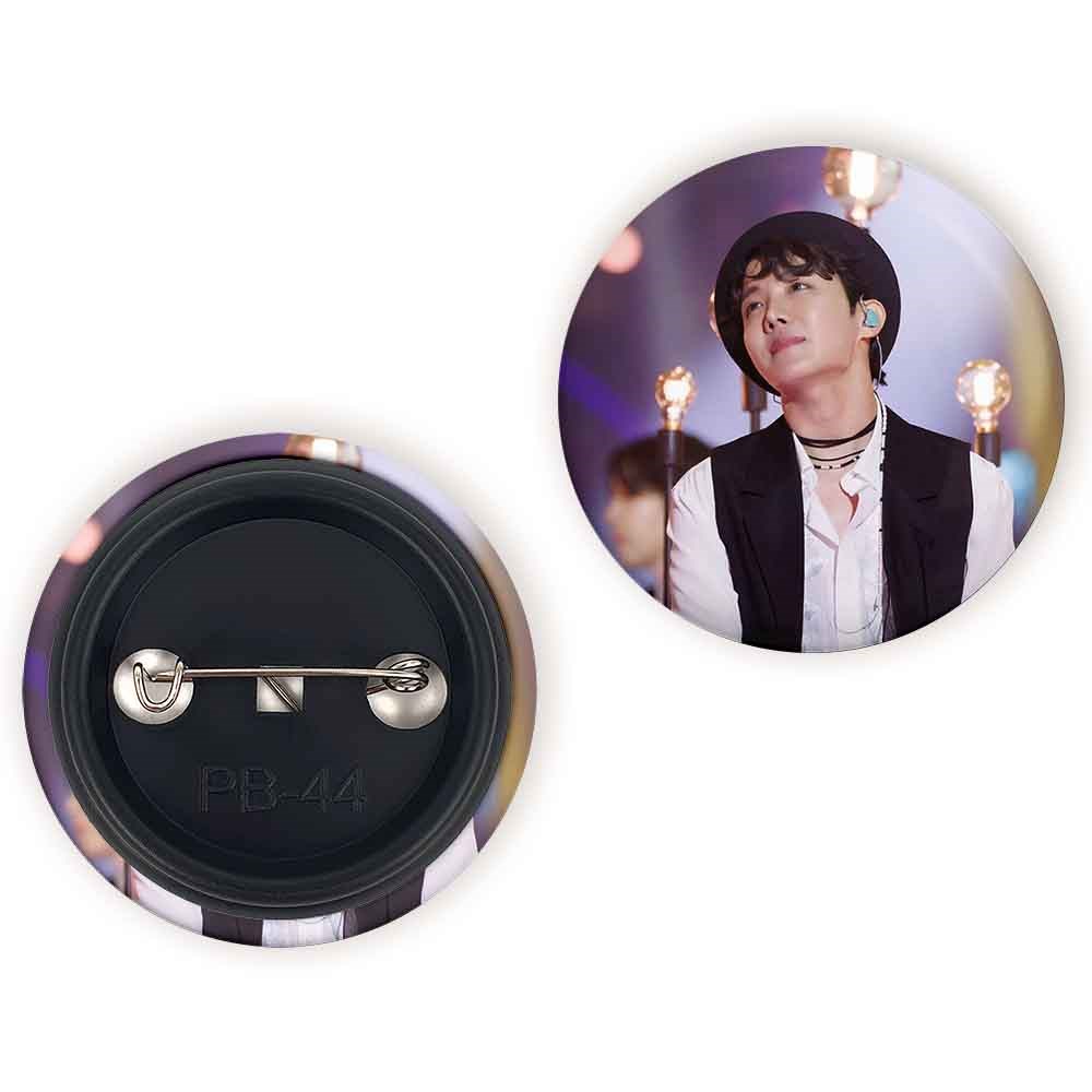 پیکسل 44 میلی متری جی هوپ J Hope گروه بی تی اس BTS خندالو با روکش سلفون حرارتی مات مخملی ضدخش و قطعه پشتی رنگی تولید شده است.پلاستیکی پشت پیکسل با سوزن یک تکه ثابت و بدون لغزش و جا به جایی، ایستایی بسیار بهتری نسبت به پشتی فلزی پیکسل دارند که این مهم در تولید این محصول نیز رعایت شده است.