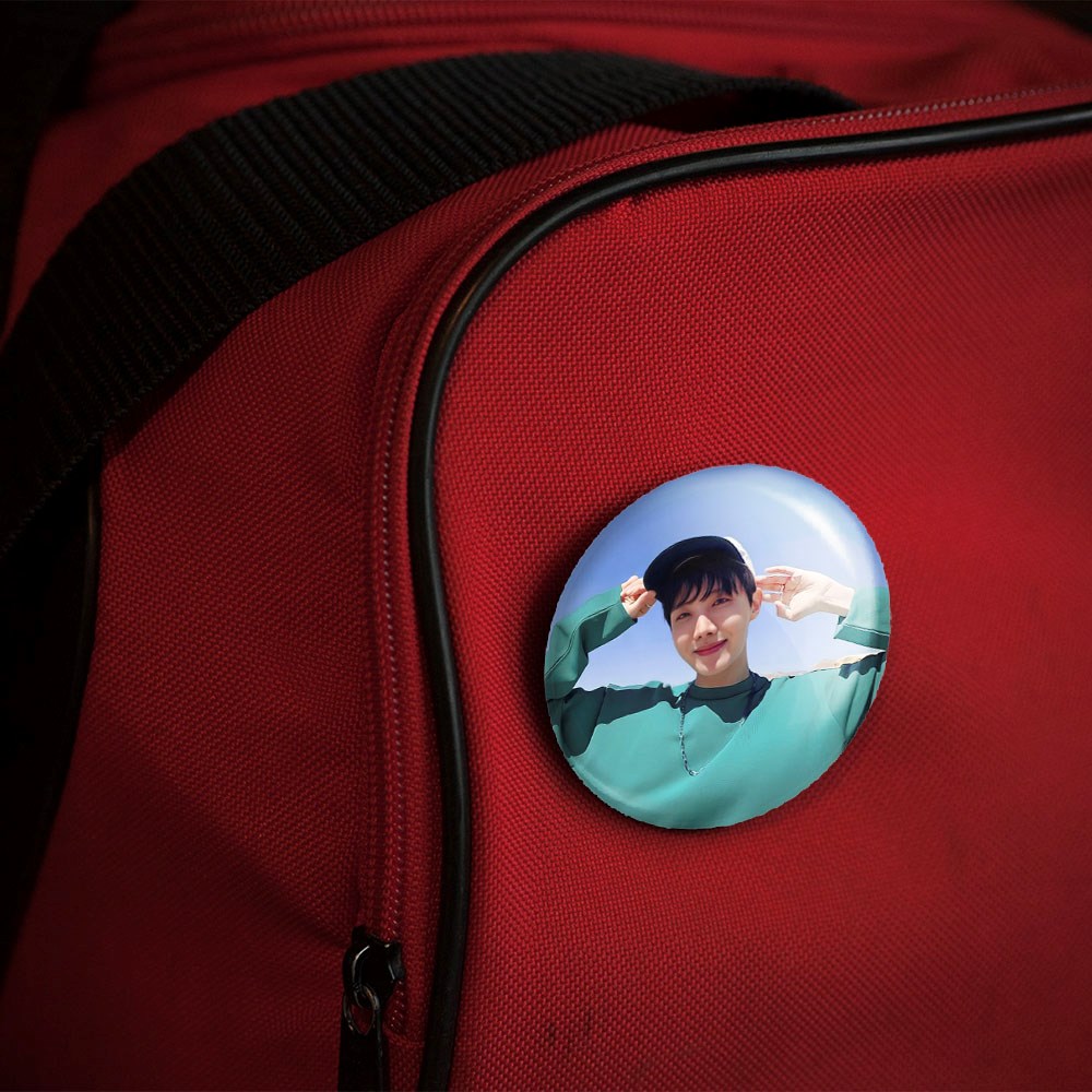 پیکسل 44 میلی متری جی هوپ J Hope گروه بی تی اس BTS خندالو با روکش سلفون حرارتی مات مخملی ضدخش و قطعه پشتی رنگی تولید شده است.پلاستیکی پشت پیکسل با سوزن یک تکه ثابت و بدون لغزش و جا به جایی، ایستایی بسیار بهتری نسبت به پشتی فلزی پیکسل دارند که این مهم در تولید این محصول نیز رعایت شده است.