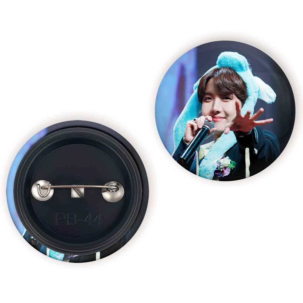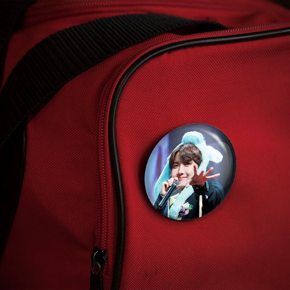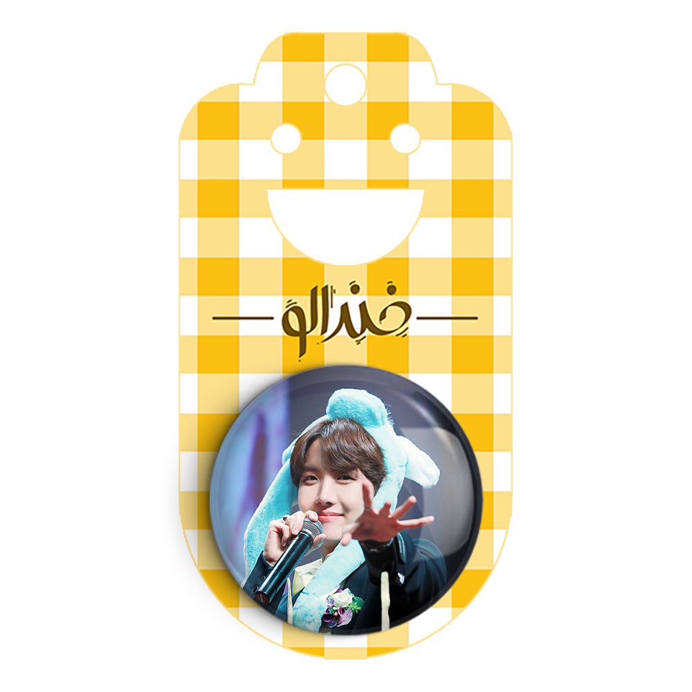 پیکسل 44 میلی متری جی هوپ J Hope گروه بی تی اس BTS خندالو با روکش سلفون حرارتی مات مخملی ضدخش و قطعه پشتی رنگی تولید شده است.پلاستیکی پشت پیکسل با سوزن یک تکه ثابت و بدون لغزش و جا به جایی، ایستایی بسیار بهتری نسبت به پشتی فلزی پیکسل دارند که این مهم در تولید این محصول نیز رعایت شده است.