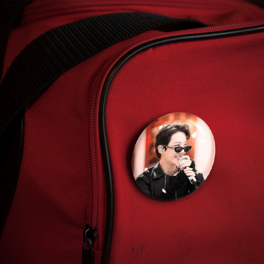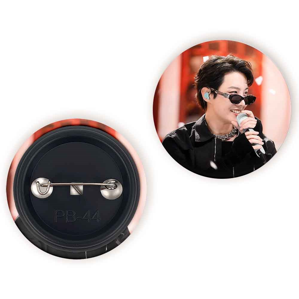 پیکسل 44 میلی متری جی هوپ J Hope گروه بی تی اس BTS خندالو با روکش سلفون حرارتی مات مخملی ضدخش و قطعه پشتی رنگی تولید شده است.پلاستیکی پشت پیکسل با سوزن یک تکه ثابت و بدون لغزش و جا به جایی، ایستایی بسیار بهتری نسبت به پشتی فلزی پیکسل دارند که این مهم در تولید این محصول نیز رعایت شده است.