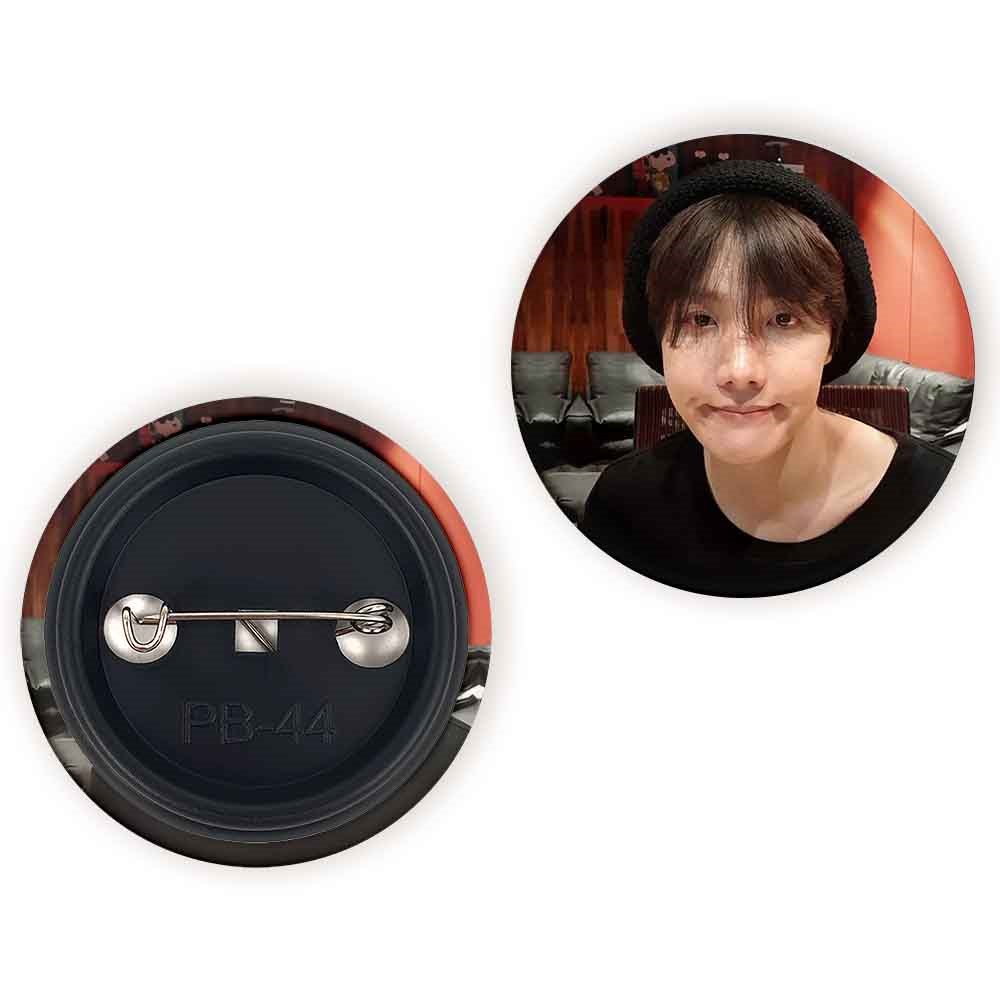 پیکسل 44 میلی متری جی هوپ J Hope گروه بی تی اس BTS خندالو با روکش سلفون حرارتی مات مخملی ضدخش و قطعه پشتی رنگی تولید شده است.پلاستیکی پشت پیکسل با سوزن یک تکه ثابت و بدون لغزش و جا به جایی، ایستایی بسیار بهتری نسبت به پشتی فلزی پیکسل دارند که این مهم در تولید این محصول نیز رعایت شده است.
