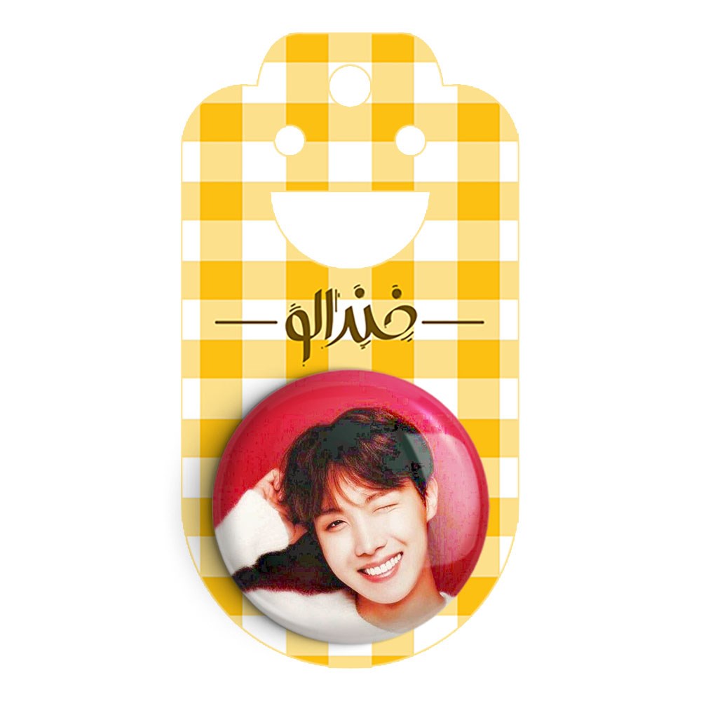 پیکسل 44 میلی متری جی هوپ J Hope گروه بی تی اس BTS خندالو با روکش سلفون حرارتی مات مخملی ضدخش و قطعه پشتی رنگی تولید شده است.پلاستیکی پشت پیکسل با سوزن یک تکه ثابت و بدون لغزش و جا به جایی، ایستایی بسیار بهتری نسبت به پشتی فلزی پیکسل دارند که این مهم در تولید این محصول نیز رعایت شده است.